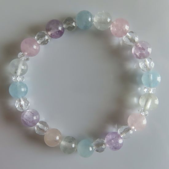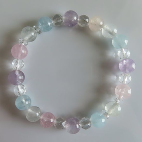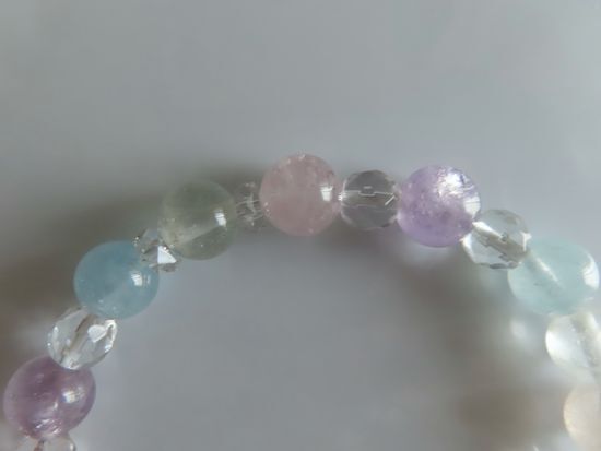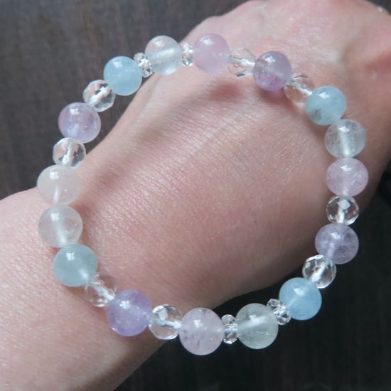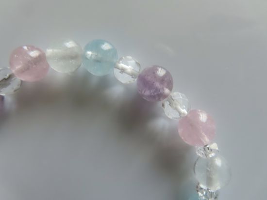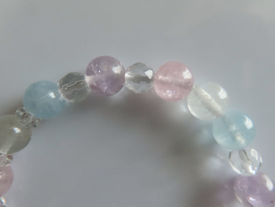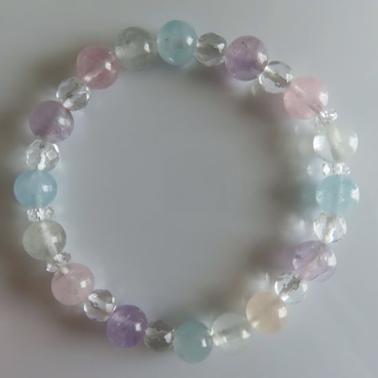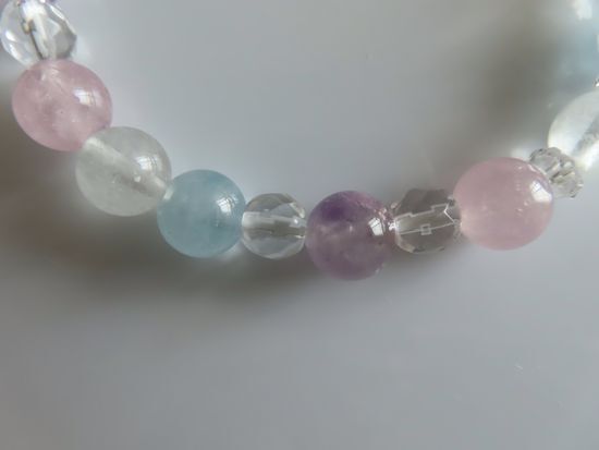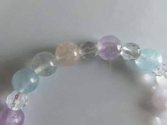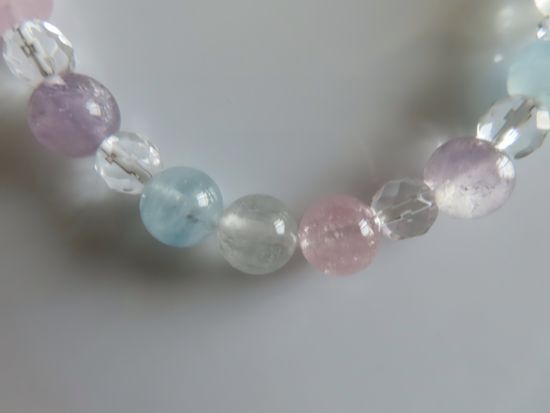 アクアマリン、モルガナイト、ゴシュナイト、ラベンダーアメジスト、水晶のブレスレット | |||