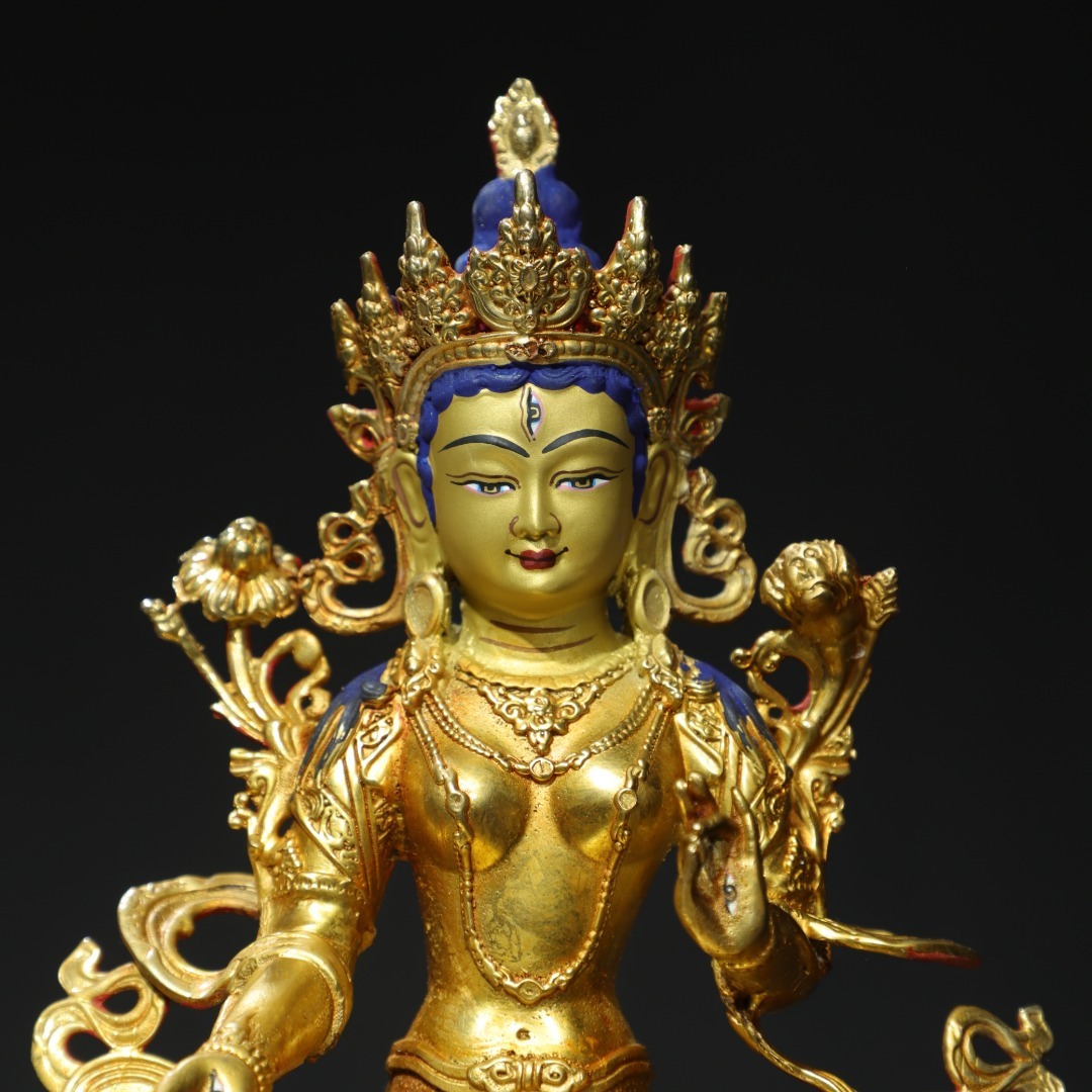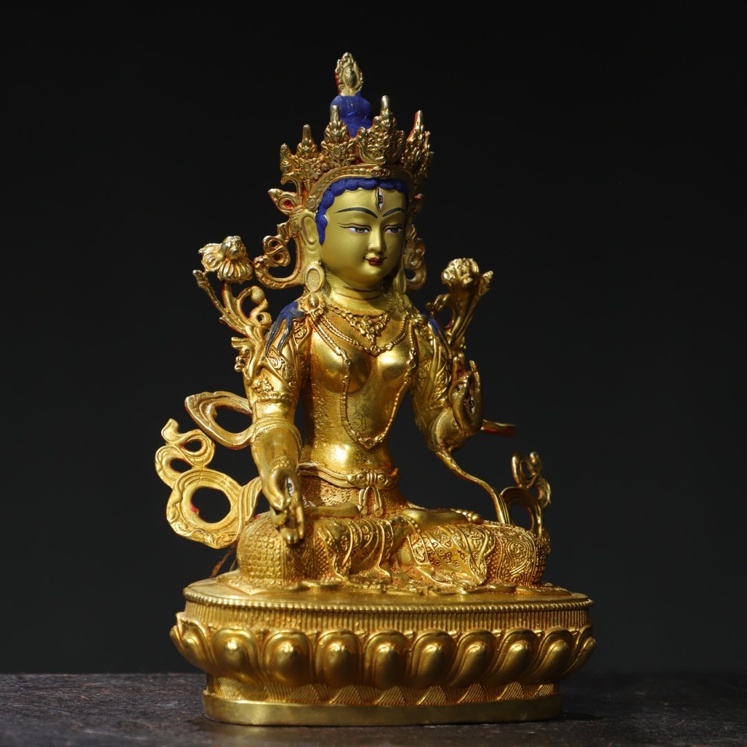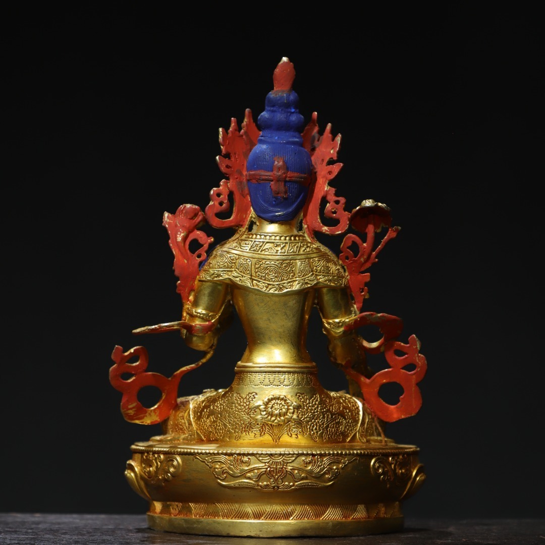 早期收集 明時代 古銅塗金 綠度母 描彩 度母 佛像 仏像 宗教 仏教古美術 極細工 古美味 中国唐物 時代物 骨董 中国古美術