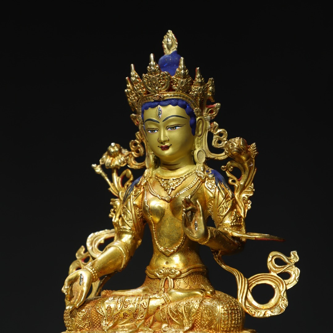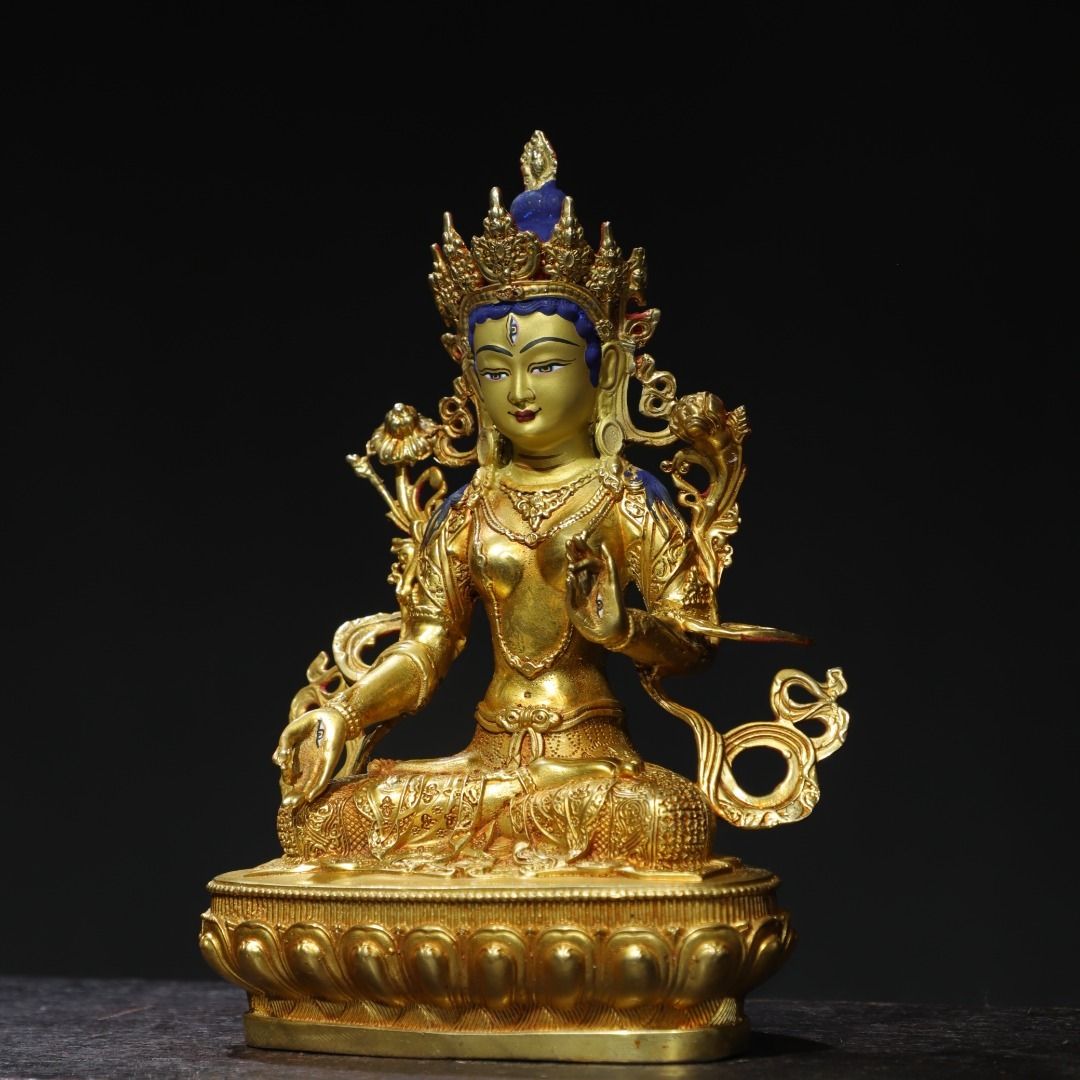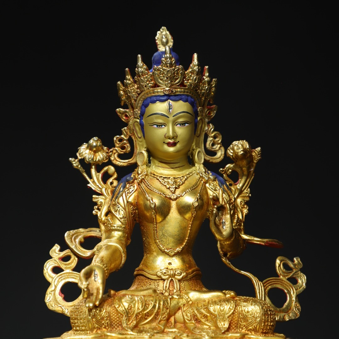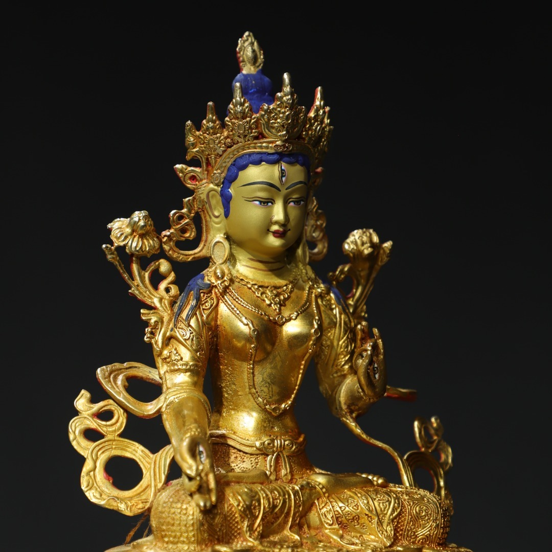 早期收集 明時代 古銅塗金 綠度母 描彩 度母 佛像 仏像 宗教 仏教古美術 極細工 古美味 中国唐物 時代物 骨董 中国古美術