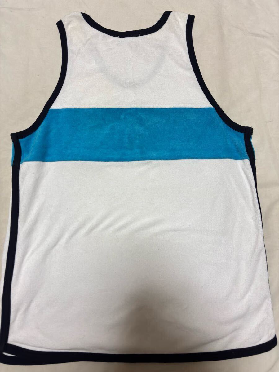 タオルような素材のタンクトップで着心地のよいアイテムです。シャツのインナーなどにも良いと思います。