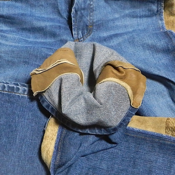リアルレザーとデニムのパッチワークでユーズド加工になります。