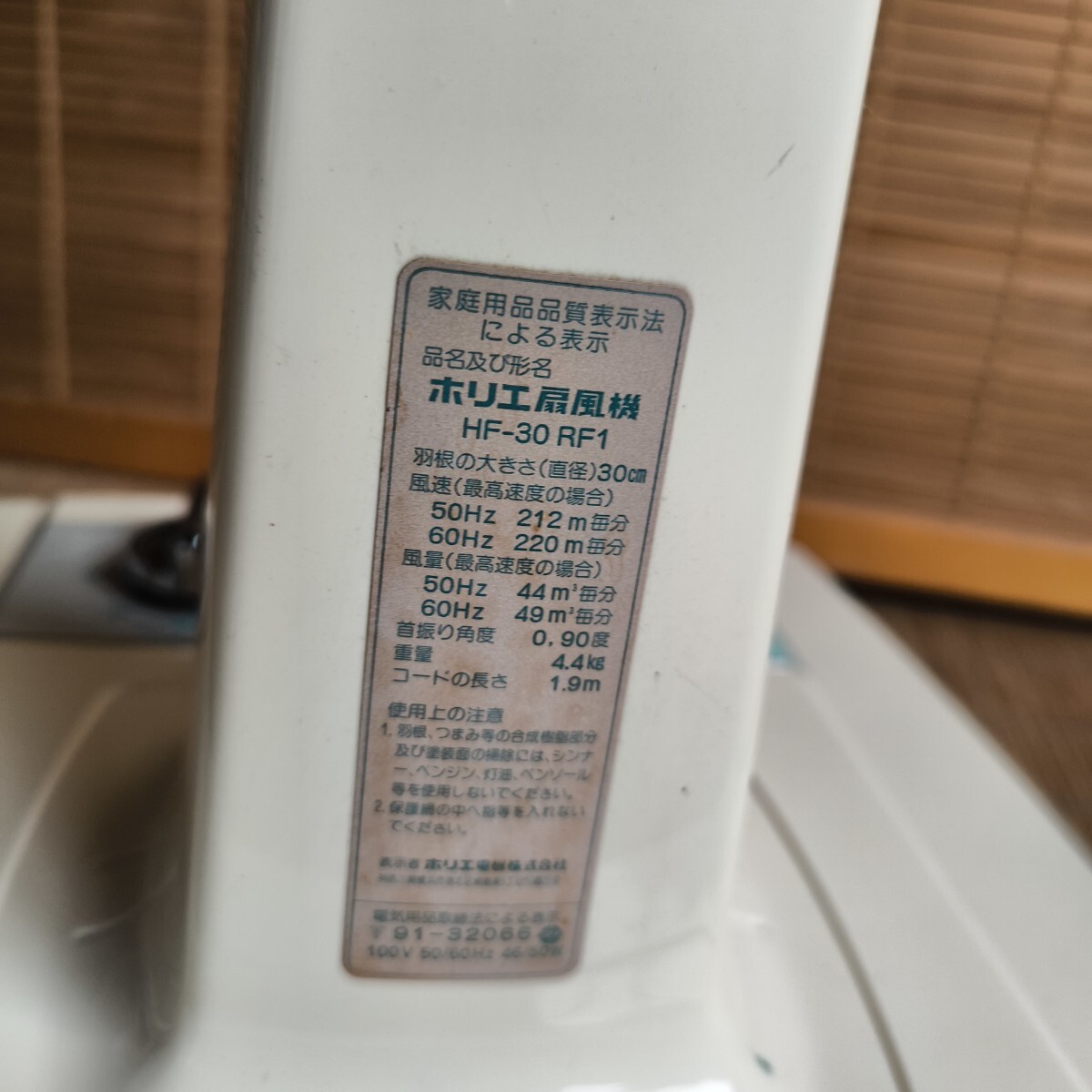◎【昭和レトロ 扇風機 ⑬】 当時物 ホリエ HF-30 RF1 インテリア レトロ扇風機 約4.5kg 高さ約73~93cm 3枚羽根 グリーン 237-84