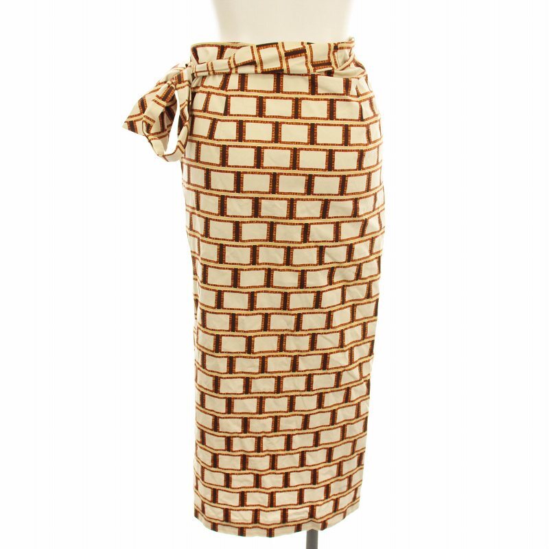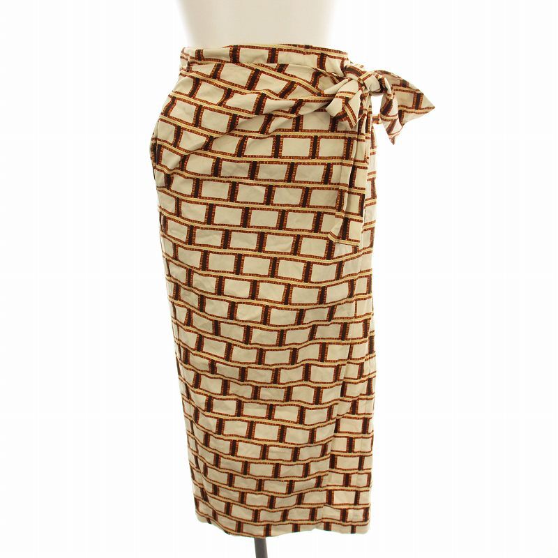 6 ROKU BEAUTY&YOUTH B&Y ロク ビューティーアンドユース ラップスカート ひざ丈 総柄 36 ベージュ 茶
