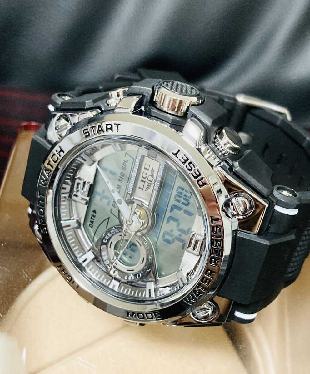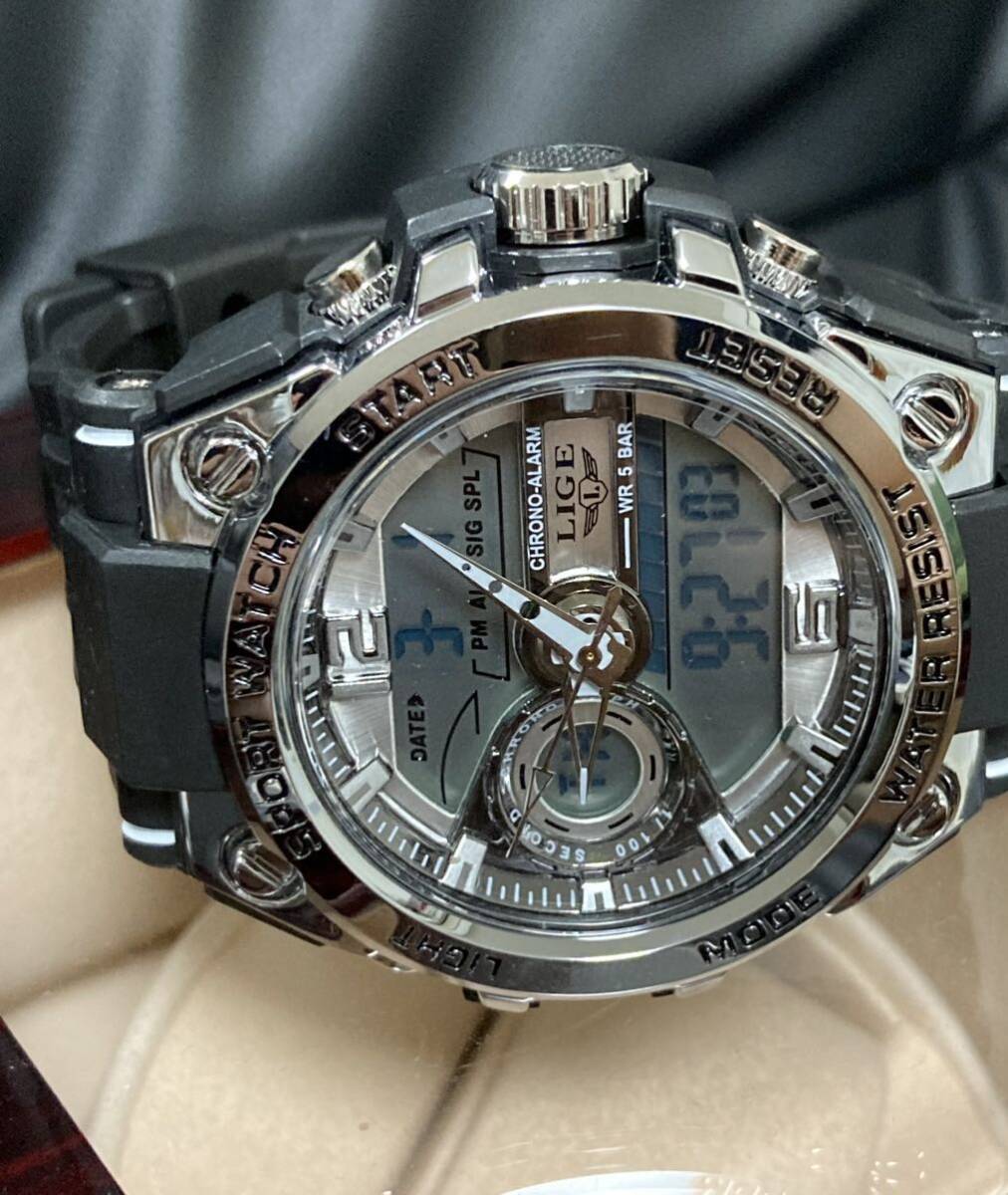 メンズ腕時計 G-SHOCKオマージュウォッチ ダイバーズデザイン サーフィン 防水腕時計 ミリタリー ラバーベルト シルバーメッキ669d