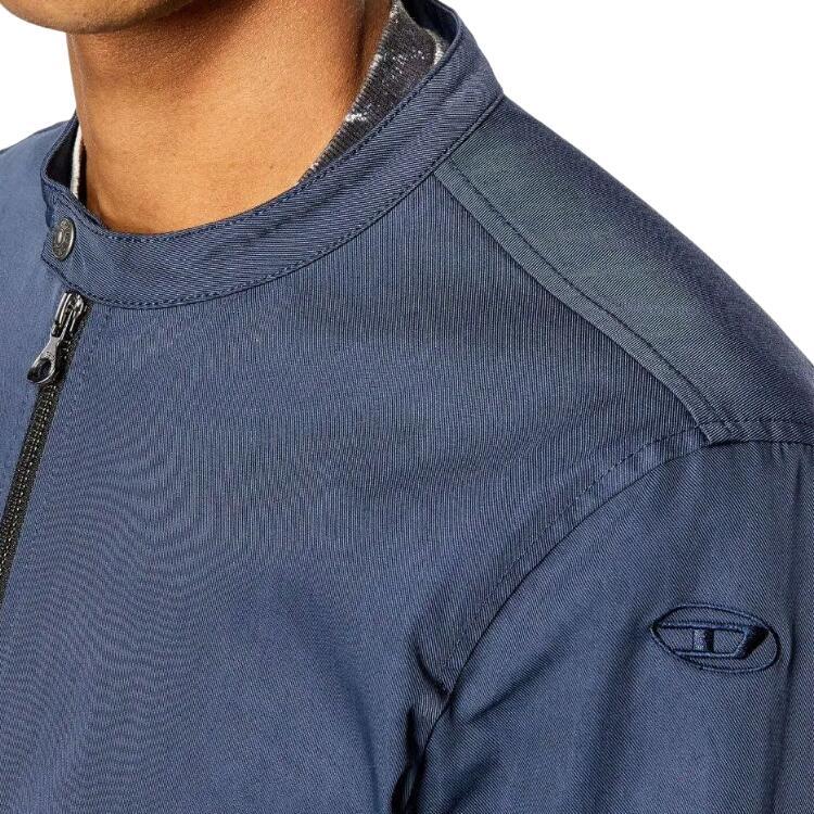 XXLサイズ/ディーゼル DIESEL ライダースジャケット メンズ ナイロン シングルライダー ブルゾン アウター ロゴ刺繍 紺 ネイビー ブルー レ