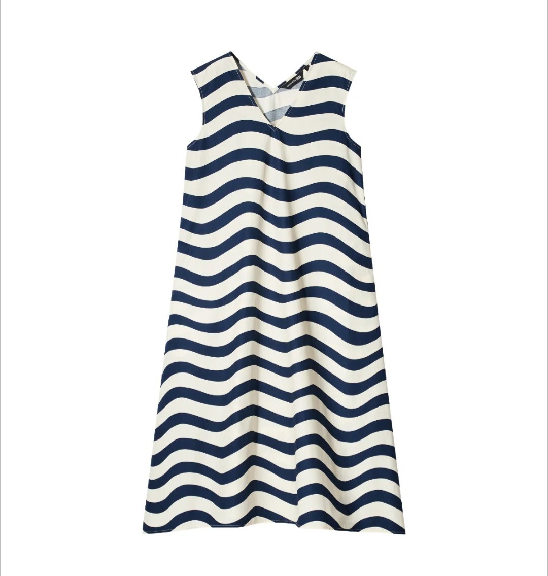 Vネックフレアノースリーブ ワンピース 白紺 M春夏 ボーダーマリメッコ UNIQLOレディーススカート