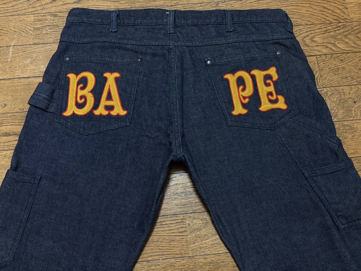 ※アベイシングエイプ A BATHING APE ロゴ刺繍 ペインターデニムパンツ 濃紺 大きいサイズ XL       BJBE.E