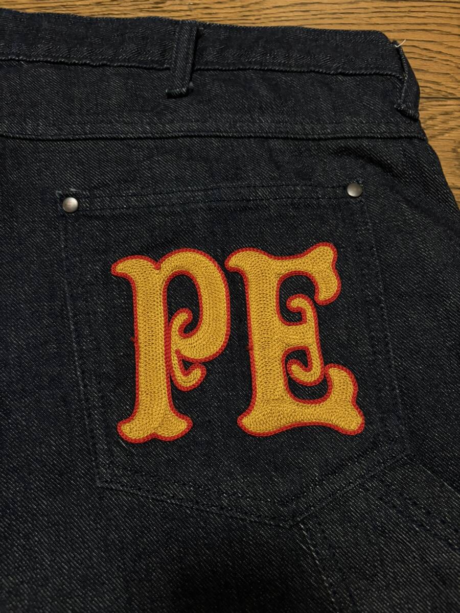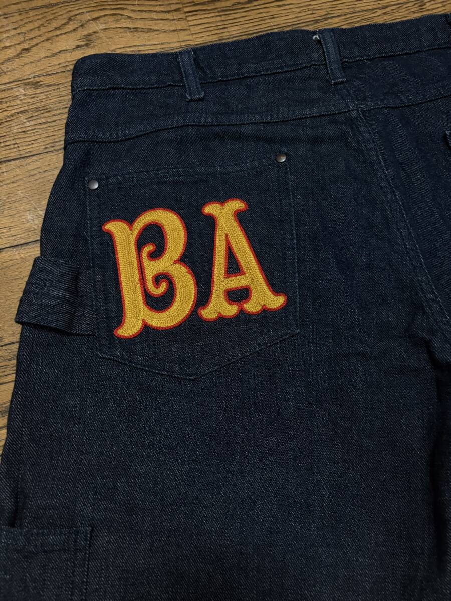 アベイシングエイプ A BATHING APE ロゴ刺繍 ペインターデニムパンツ 濃紺 大きいサイズ XL              BJBE.E