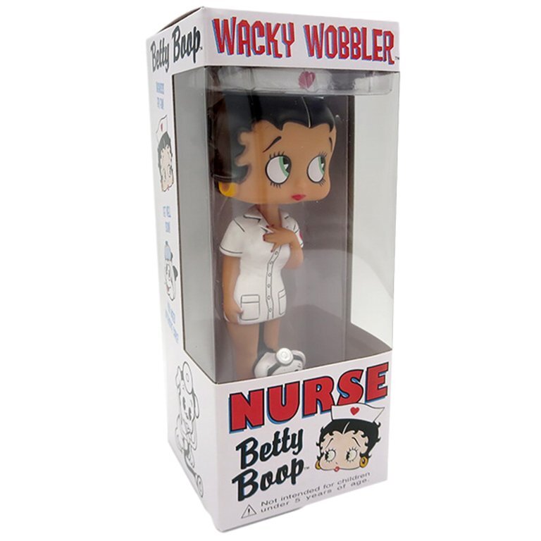 【214044】アメリカのTOY メーカー FUNKO のWACKY WOBBLE ボビングヘッドです♪コレクタブルアイテムとして人気のあるFUNKOのボビングヘッド。頭にばねが入っているので触れると、ビョ~ンビョ~ンと揺れますよ。1915年、M.フライシャー(フライシャー兄弟)が人気歌手ヘレン・ケーシの顔をモデルに生み出しましたベティちゃんは、アメリカのセックスシンボルキャラクターとして有名。ナース姿のベティちゃんはとってもキュート♪ こんな看護師さんがいたら、ナースコールを何度もしちゃいそうですwww愛犬パジーがお医者さんになっているのがイイですね~もしや... お医者さんごっこをしてるのか...!?【サイズ】パッケージ:W75/D75/H190mm本体 : φ65/H165mm【材質】PVC