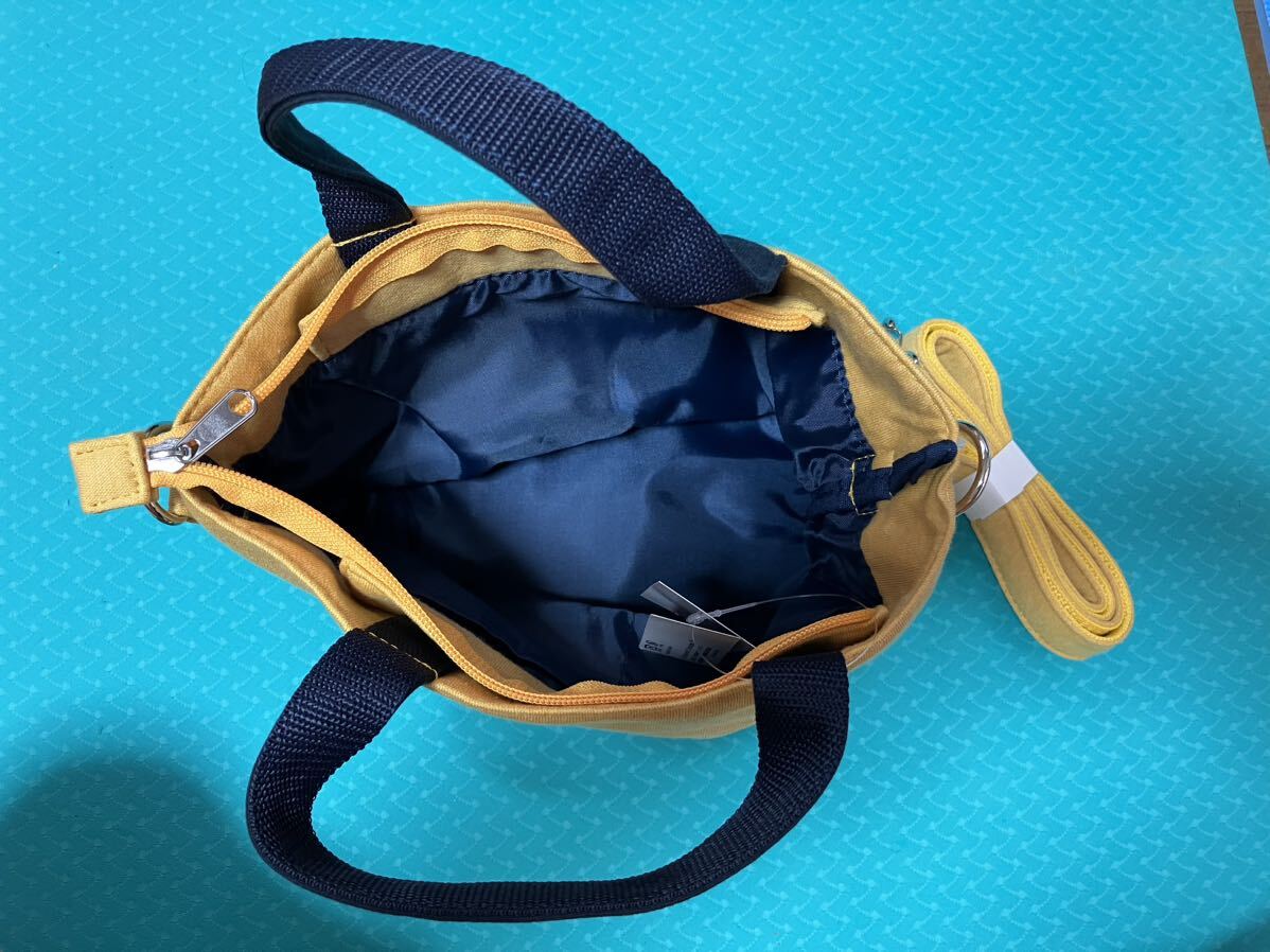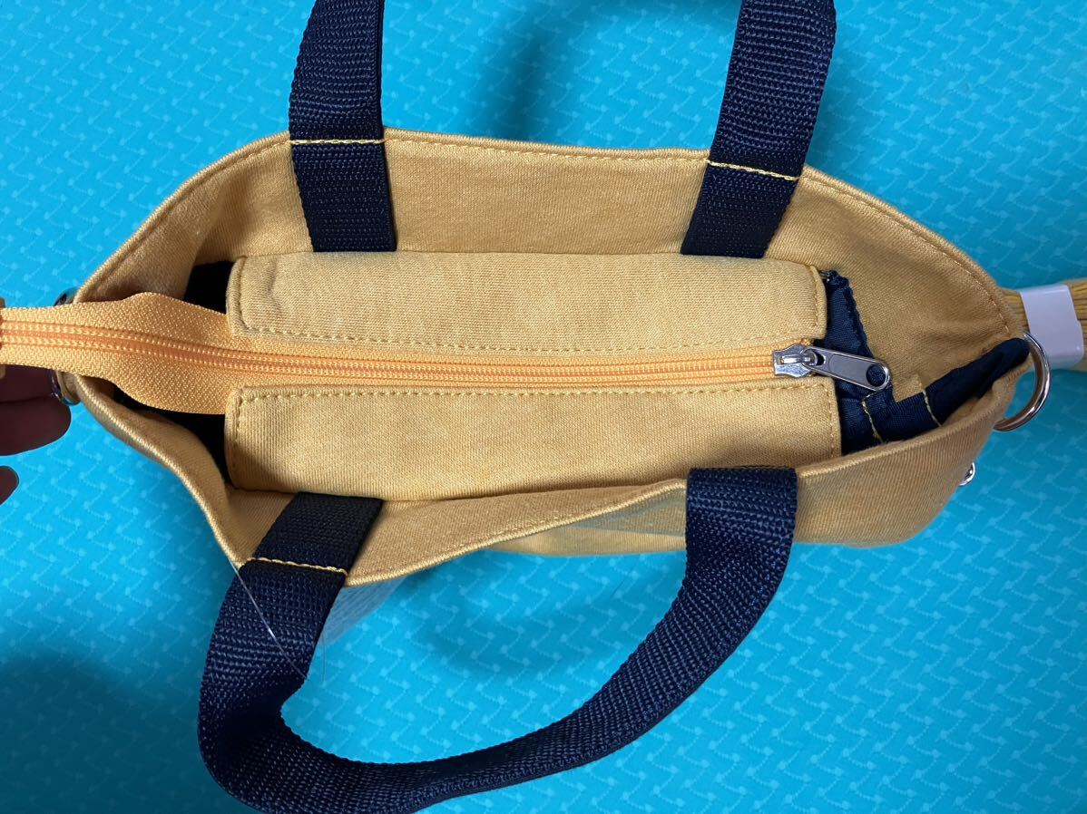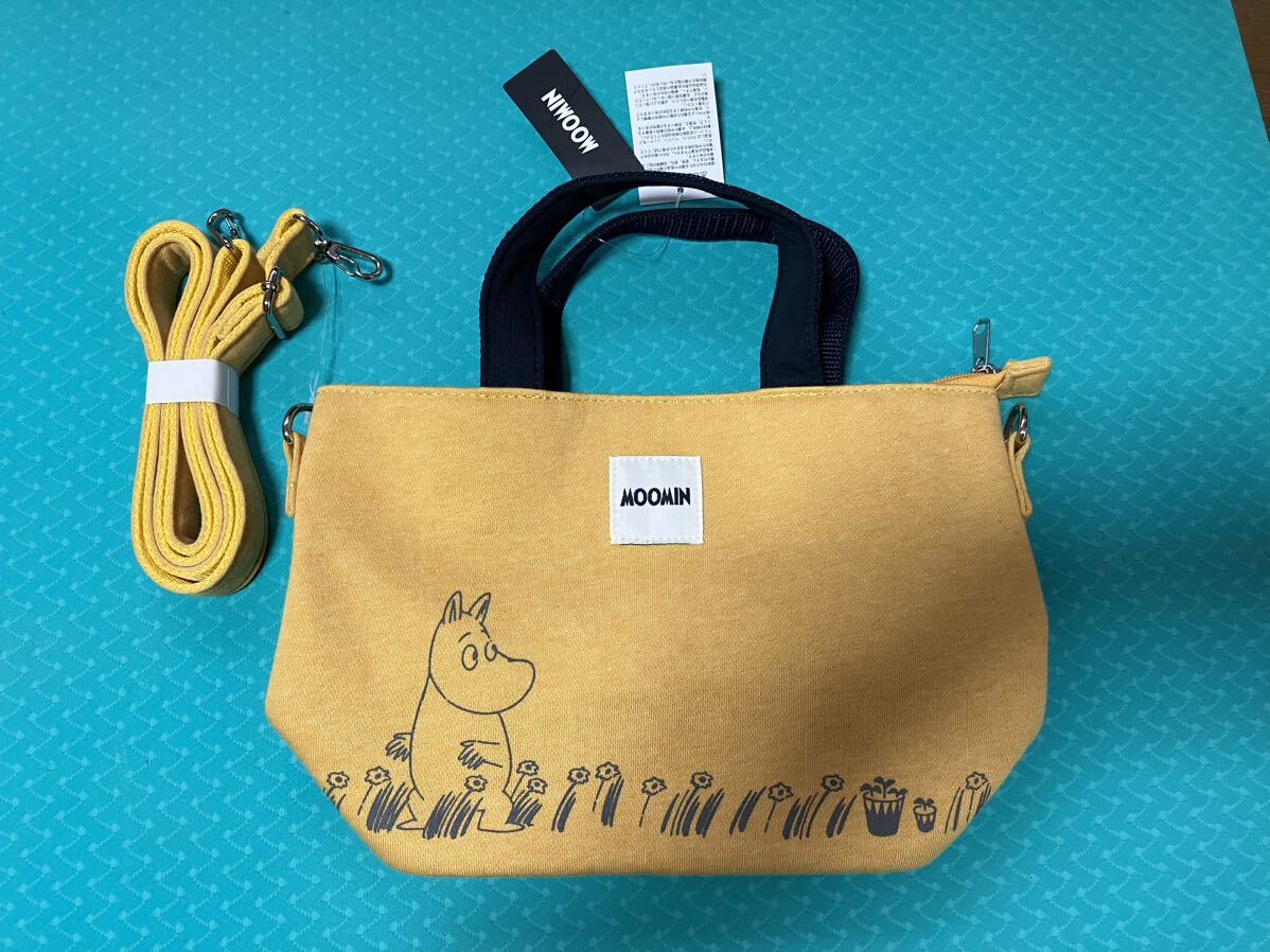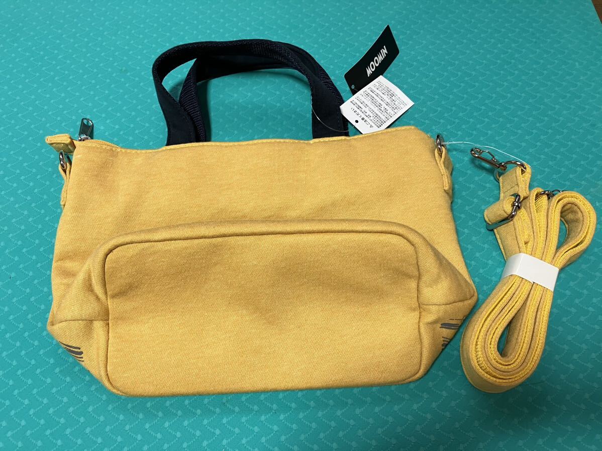 ムーミンの手提げミニトートバッグ2way マスタードイエロー/ブラック、ショルダーベルト付属 未使用新品タグ付。サイズ縦約19cm、横約21cm、幅約10cm。内側ポケット2カ所、開口部ファスナー付き。状態は画像にて確認してください。3Nでお願いします。