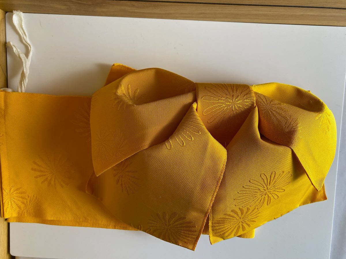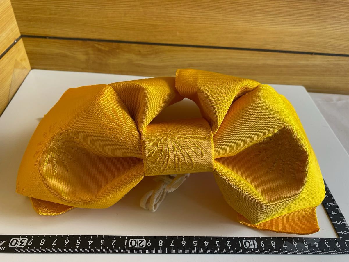 美品! 付け帯 黄色 花柄 リボン 作り帯 浴衣帯 化繊