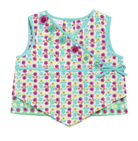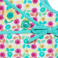 フロントのお花のアップリケにボタンがアクセントに付いています。