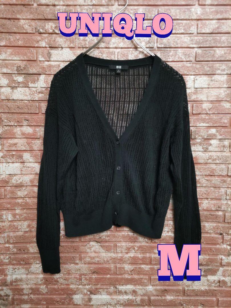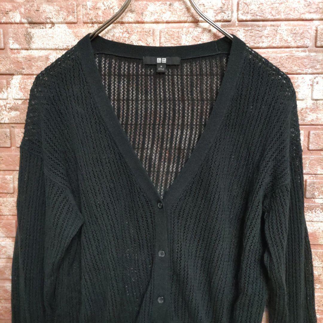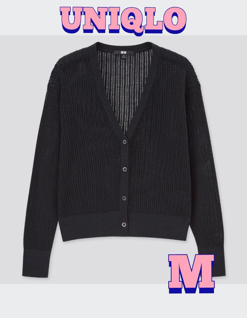 【UNIQLO】ハイツイストコットン ショート丈 長袖カーディガン 黒 M