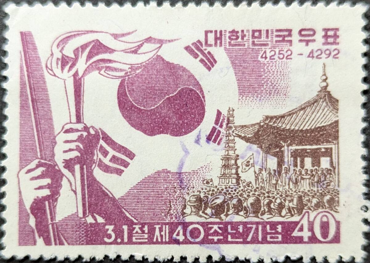 【外国切手】 韓国 1959年03月01日 発行 中途半端な独立宣言40周年 消印付き