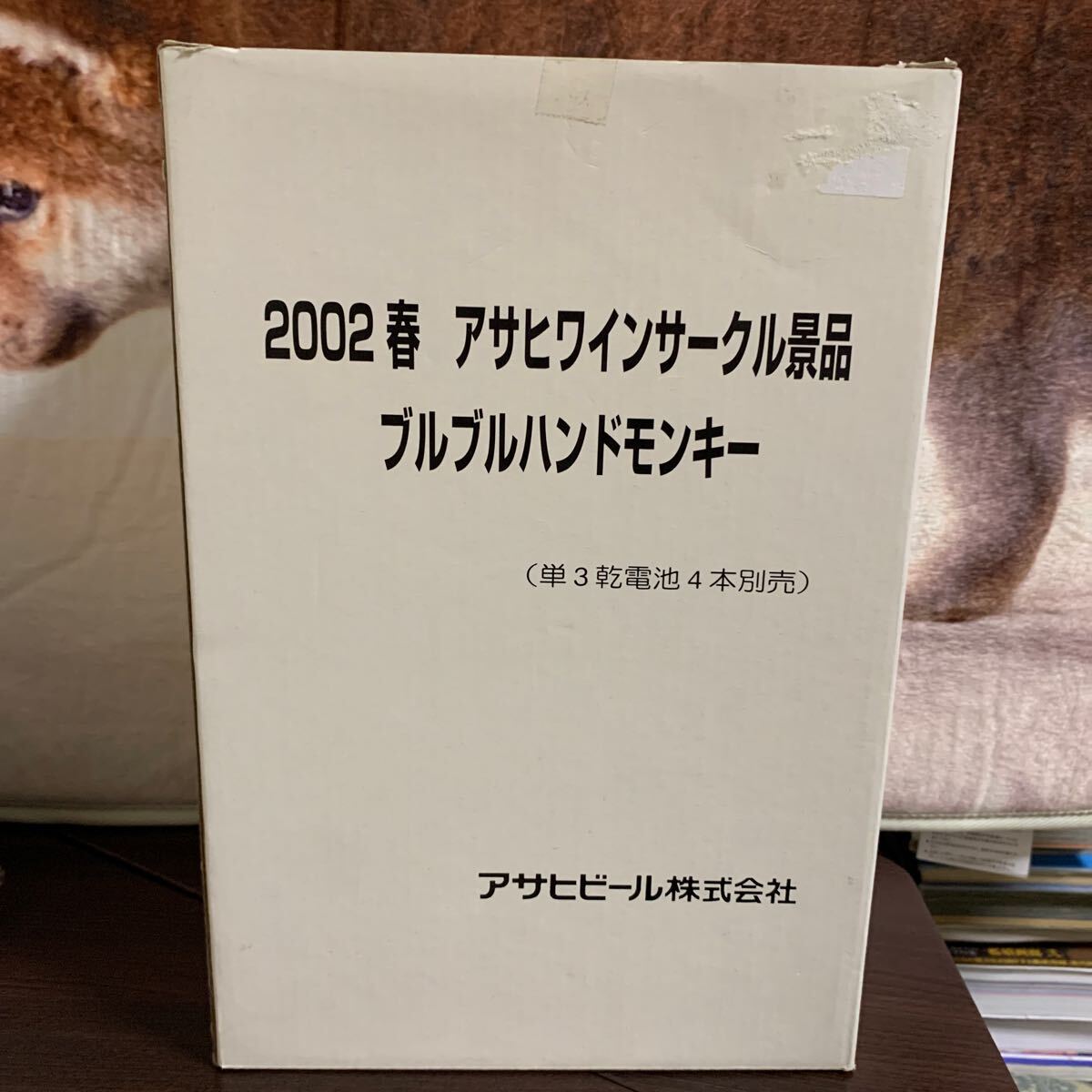 2002年製のアサヒビールのブルブルハンドモンキー。手足が動く特徴を持つ未開封のぬいぐるみです。