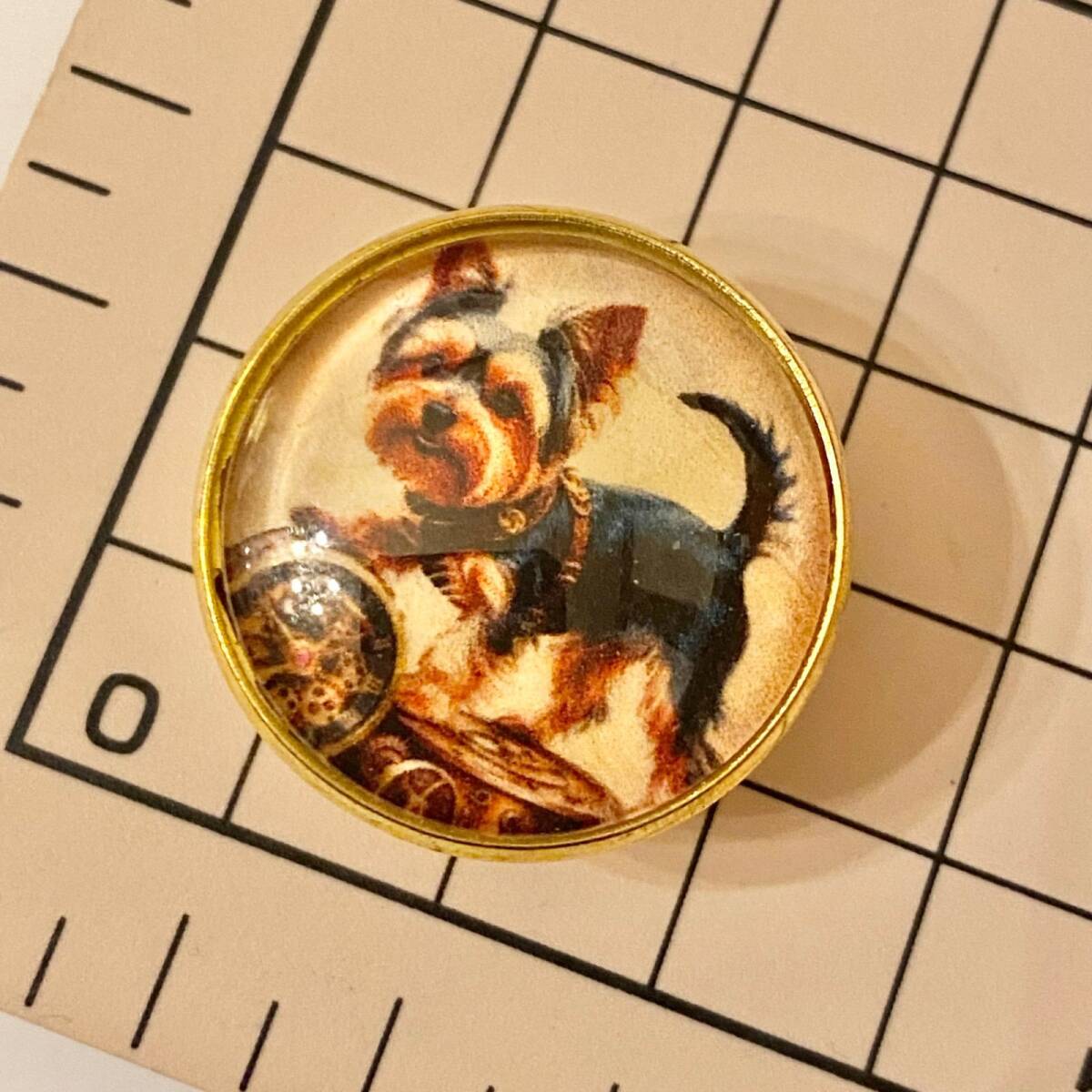 【着物リメイク ガラス帯留め 和洋折衷 和ロリータ ハンドメイド アクセサリー スチームパンク探検隊長、ヨーキー参上! GK-135】