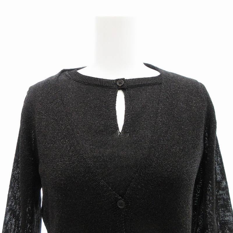 ジュンコシマダ JUNKO SHIMADA アンサンブルニット カーディガン ラメ グリッター ノースリーブ 36 黒 ブラック /FF レディース