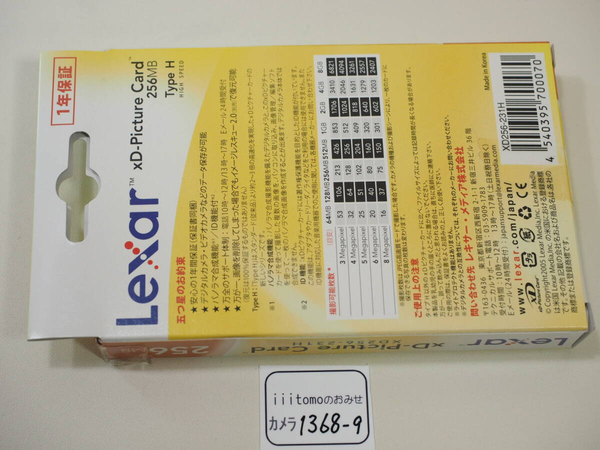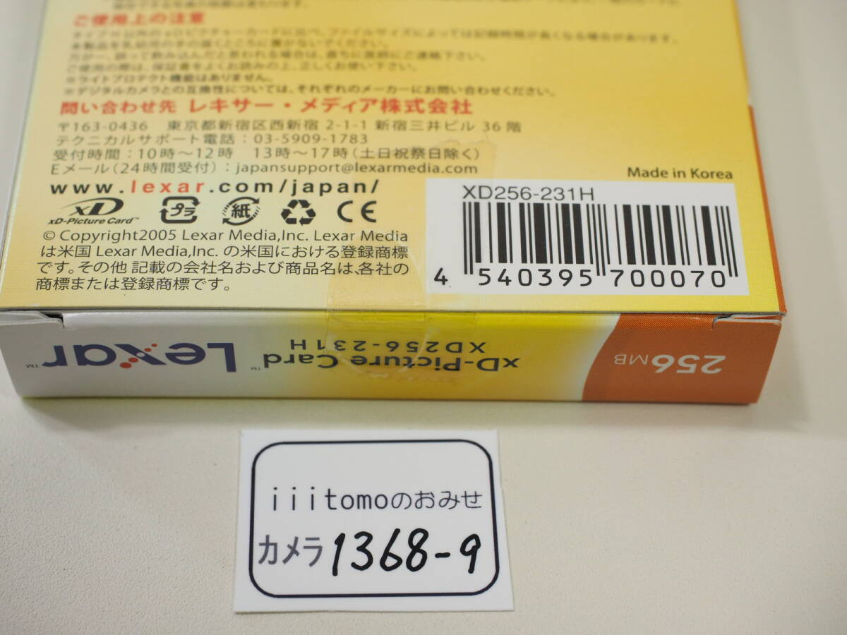 管理番号 カメラ 1368-9 タイプ xDピクチャーカード 256MB(TypeH) 未使用ですが、箱にセロテープ貼付があります ブランド名 Lexar レキサー(OLYMPUS オリンパス) 製造国 韓国製 サイズ ━ |
