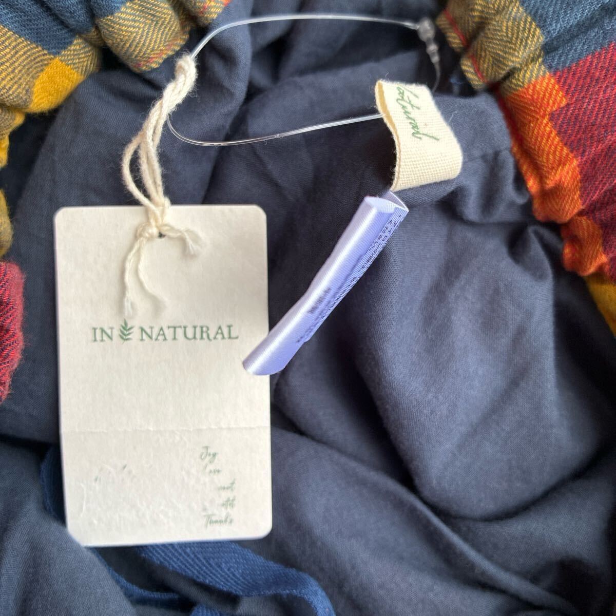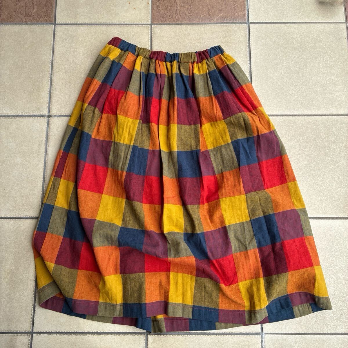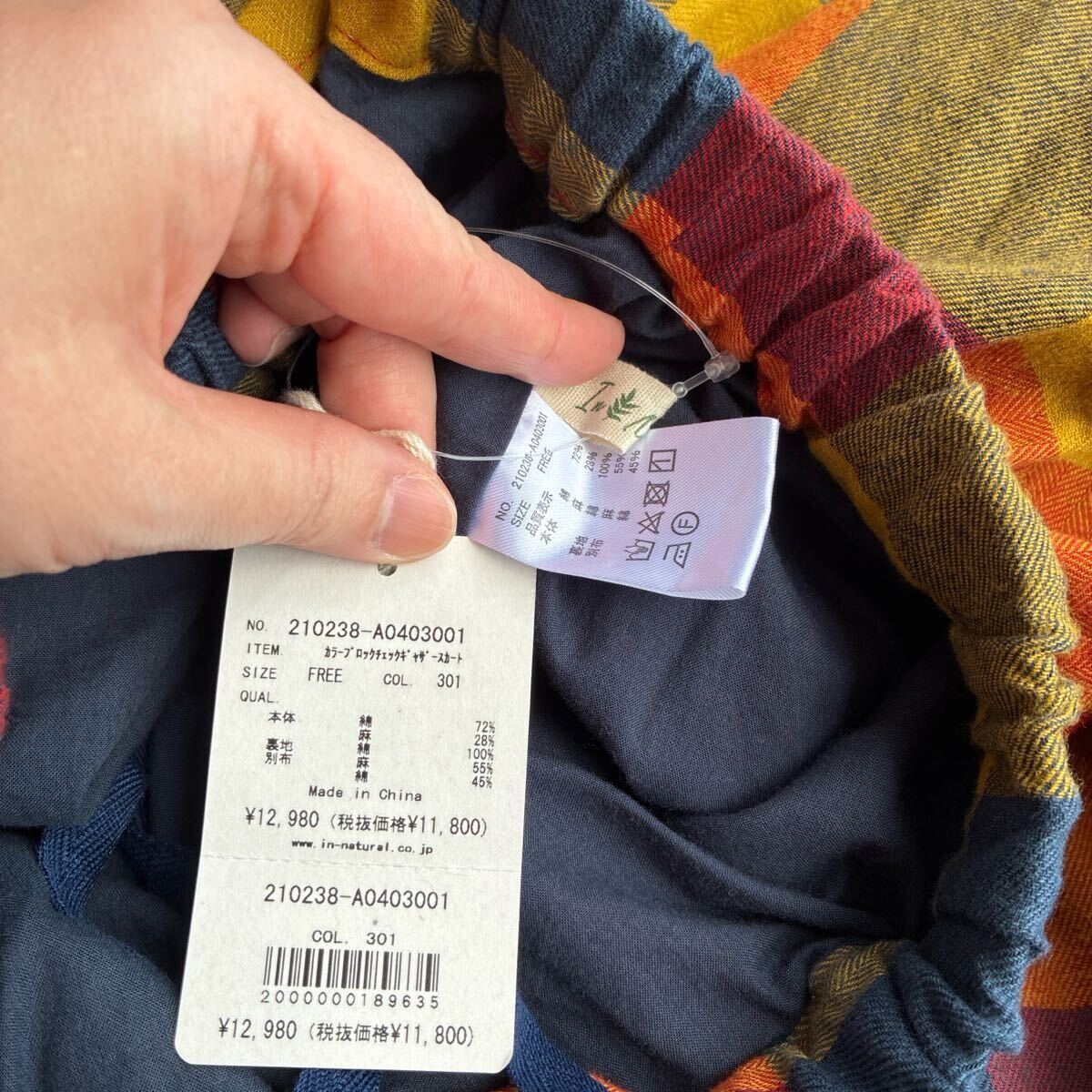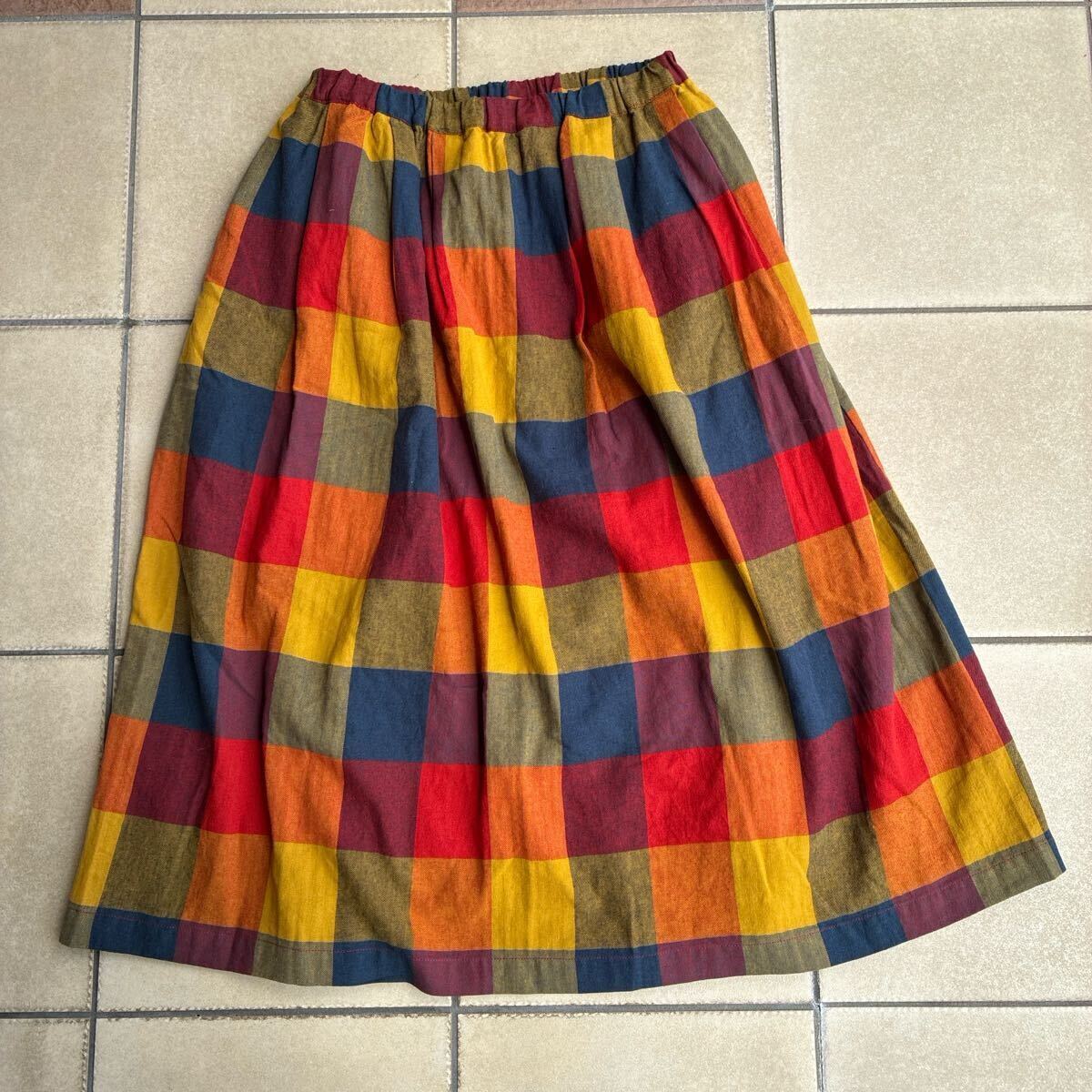 新品タグ 未着 IN NATURAL インナチュラル カラーブロックチェックギャザースカート