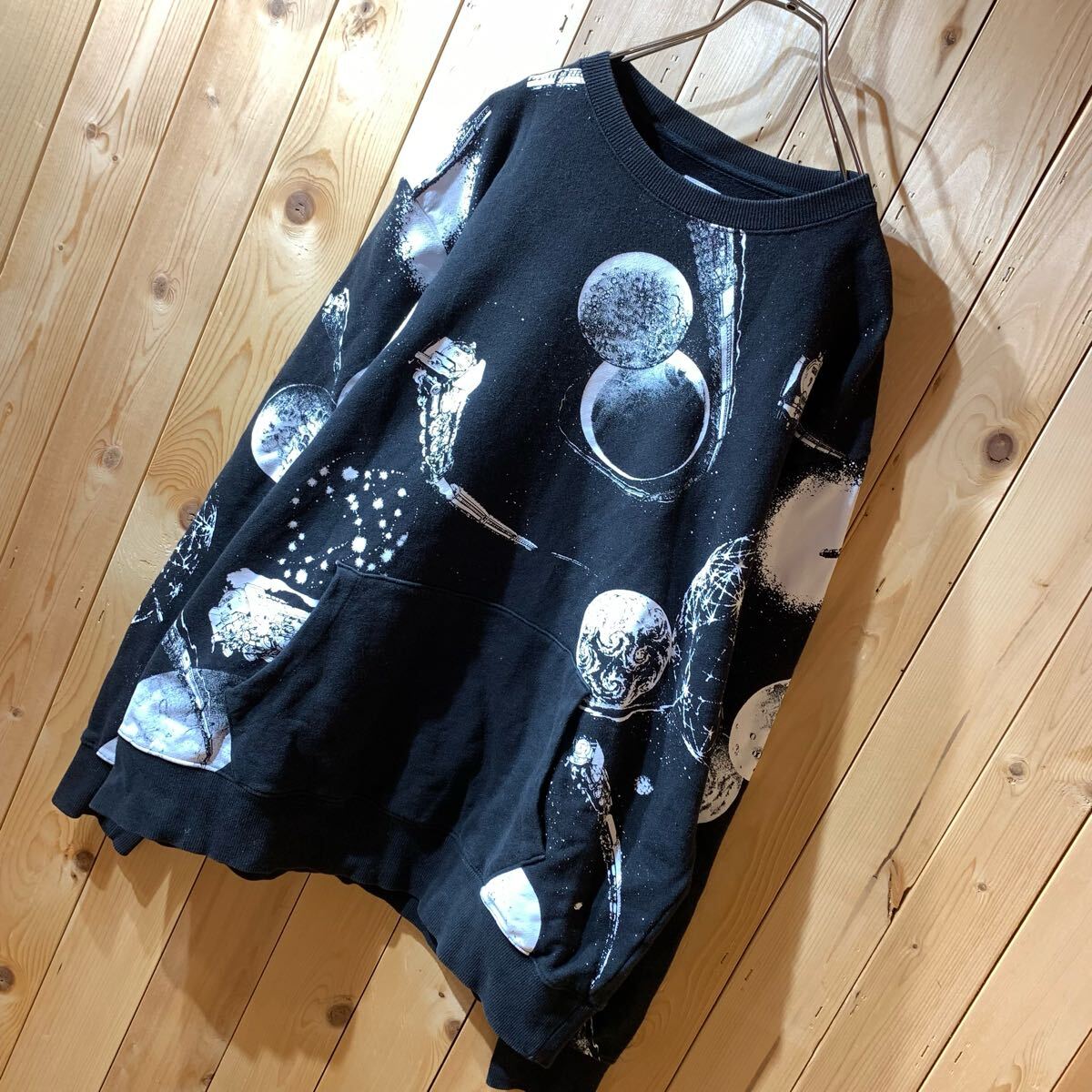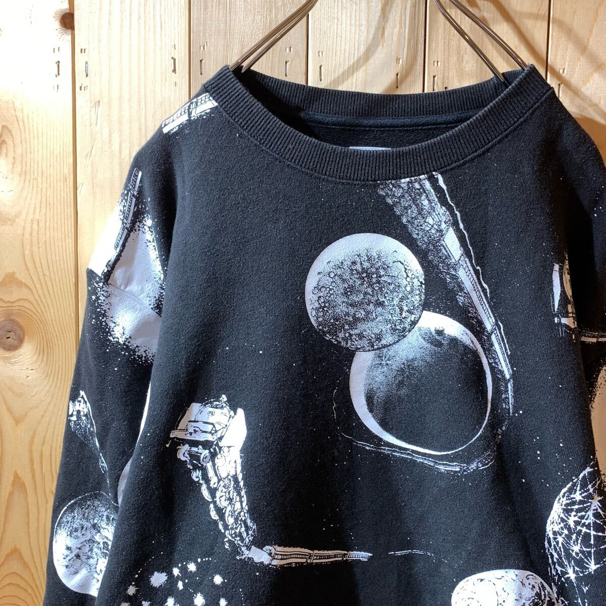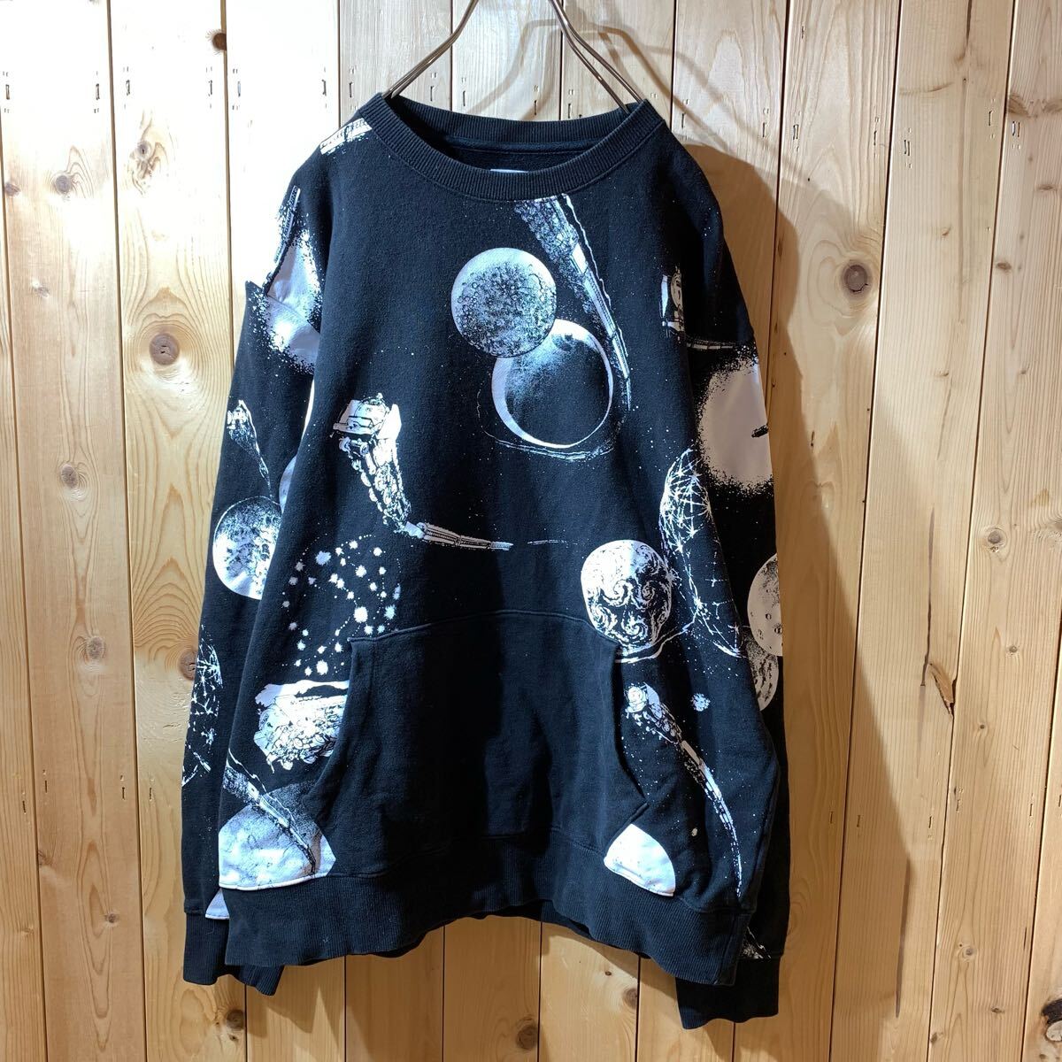 [YUK299]グラニフ スウェット トレーナー 総柄 銀河鉄道 松本零士 黒 ブラック L メンズ