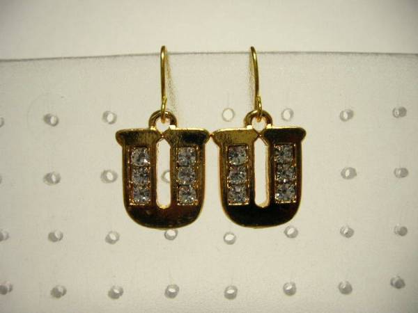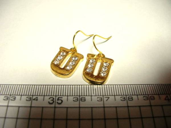 ストーン付きイニシャルU ピアス 1ペアセットです。