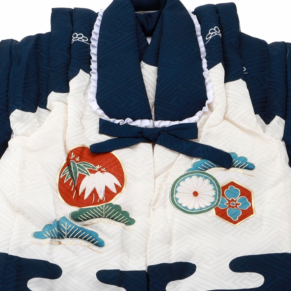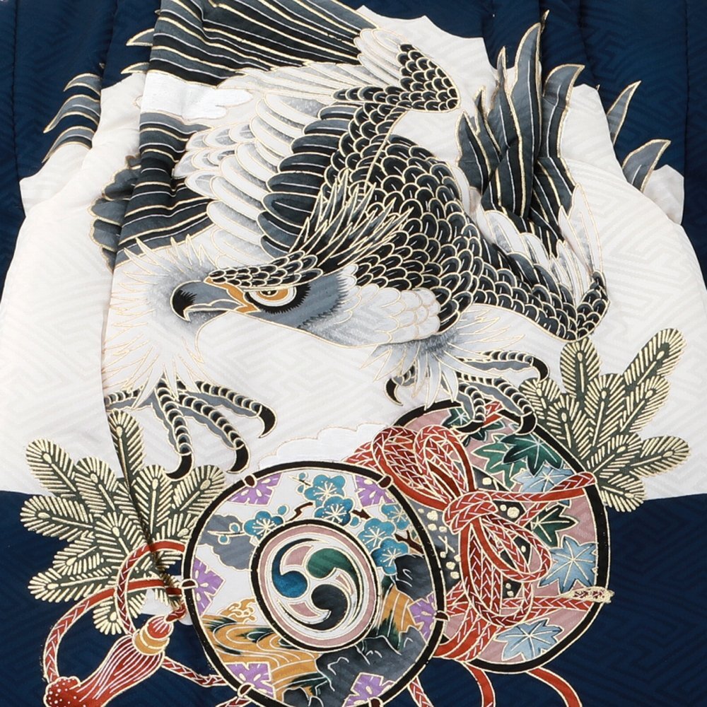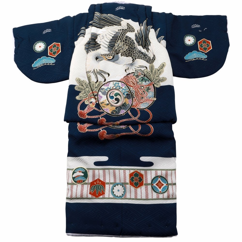 ■正絹 お宮参り 着物■日本製 お宮参り でんちセット 男児 綿入り 一つ身 産着 90サイズ 鷹 紺 1h-29-B 【お祝い 男の子】