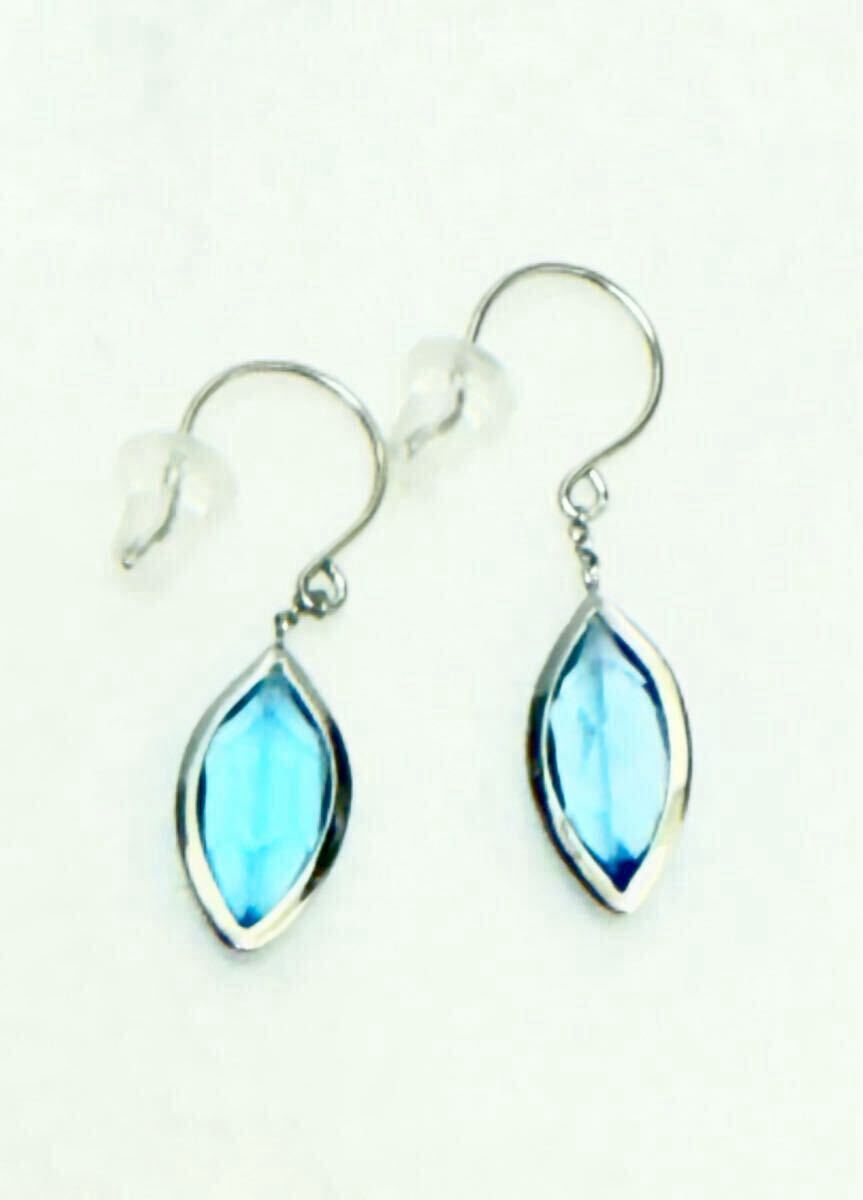 ブルートパーズ マーキス Pt900 ピアス ロングピアス フックピアス