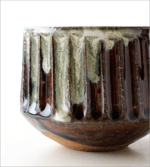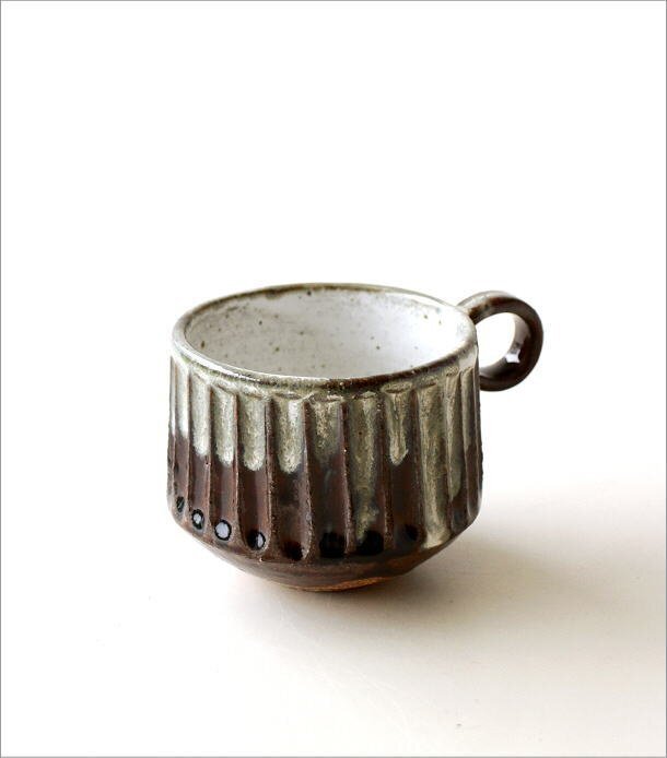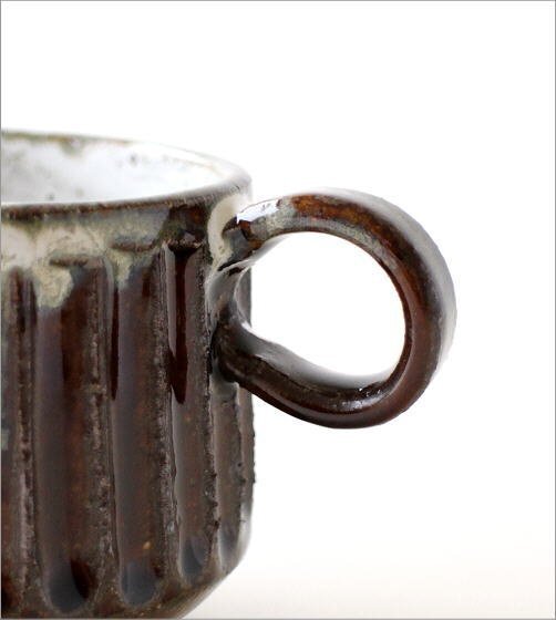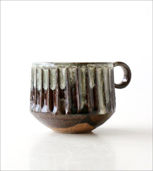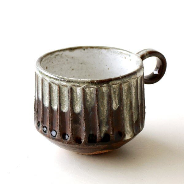 | 伝統的な鎬のやや粗い彫り模様に 個性的な持ち手がポイントの ずっしりとした趣のスープ&マグカップ 施釉を重ねた後、窯の中の炎による 「火変わり」が作り出す模様が魅力で 器の並べ方、位置、温度で表情が変化し 色彩をより深く味わいのある器 鉱石が混じった粗土を使用しているので 焼き上がりに石が表面に現れ、 内側以外は全てざらっとした仕上がりの 持つたびに愛着が湧く器です 商品名 : 縞彫 スープ&マグ 商品番号 : mkn8558 サイズ(cm) : 口径8×高さ7.5 材質 : 陶器 重量 : 270g 内容量(9分目) : 288cc 使用方法 : 電子レンジ)〇 食洗器)〇 オーブン)× 生産国 : 日本(瀬戸) ※陶器の裏面は多少ざらざらとしているため、テーブル等の擦り傷にご注意ください -陶器(土物)の特性とお願い- 土物は同じ技法、同じ窯で焼成しても土や釉薬に含まれる天然鉱物などの影響や天候で焼き上がりは微妙に異なります。工業製品のように同一の物になる事はありません。手作りの不均一性、窯変、釉薬の細かいヒビ(貫入)や垂れ等は、製造元より土物の特性として良品の扱いとなります。ご理解頂きお買い求めくださいますようお願い申し上げます |