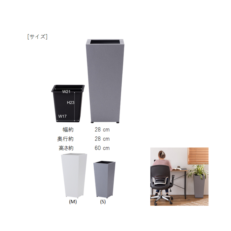 サイズ(インナー内寸)/上部21×21、底部17×17、高23cm