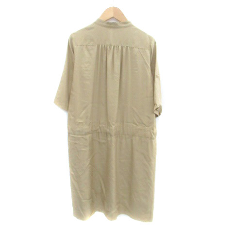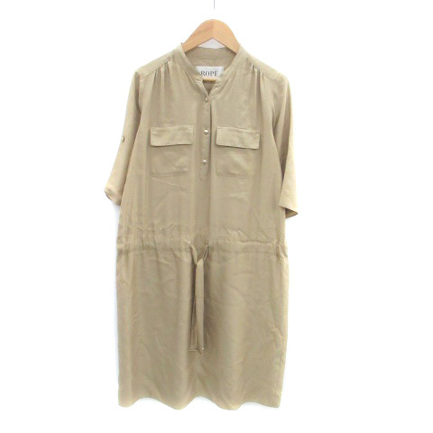 ロペ ROPE ワンピース スリットネック 七分袖 ひざ丈 36 S ベージュ /HO13 レディース