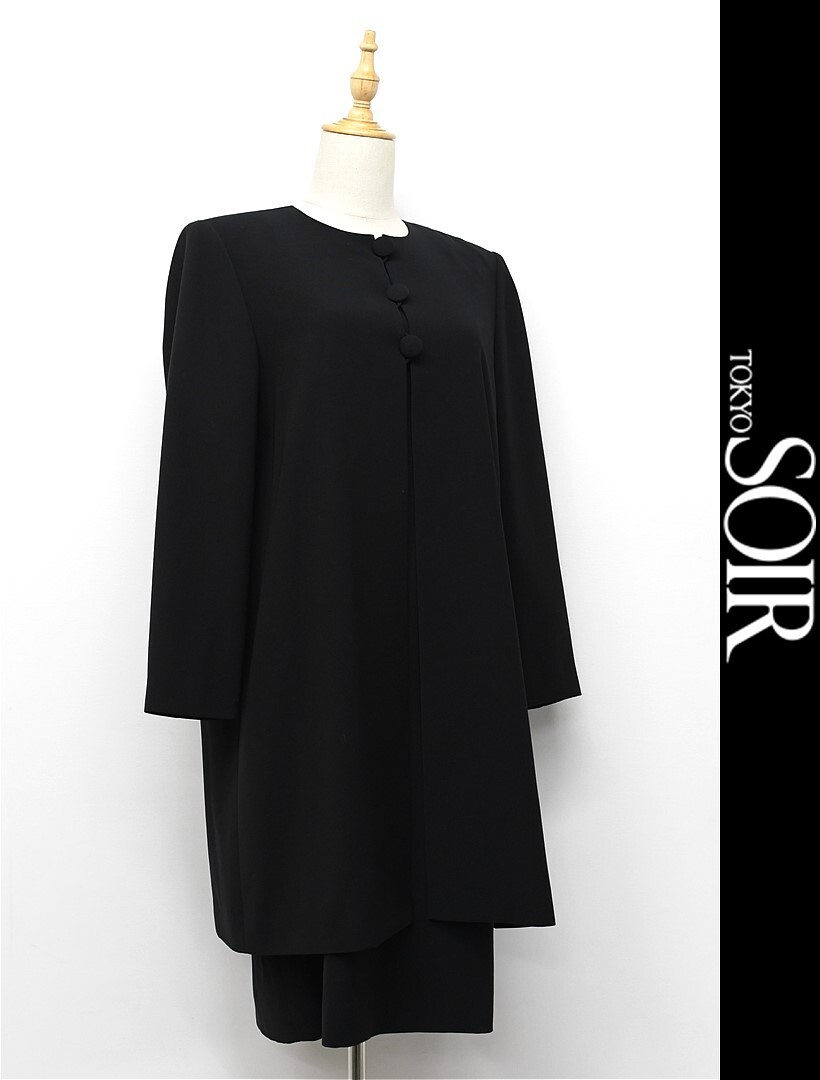 U319/TOKYO SOIR 東京ソワール セットアップ スーツ ノーカラーコート ジャケット ひざ丈ワンピース 11 L 冠婚葬祭 ブラックフォーマル