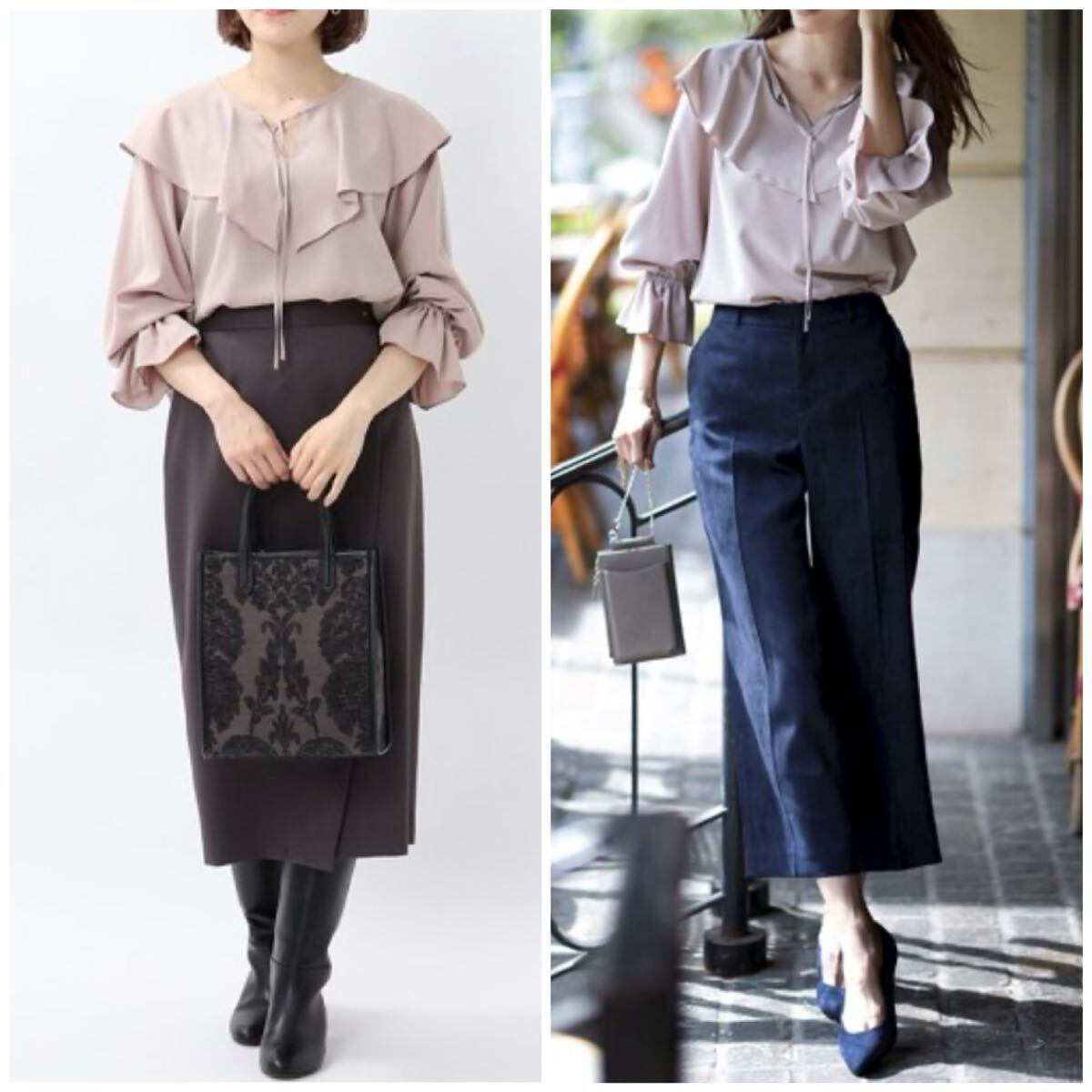 ラッフル+リボンのフェミニンデザインが今季オススメのブラウスです。