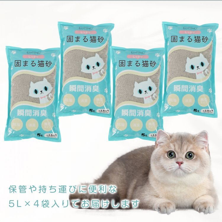 猫砂 5L×4袋 しっかり固まる 消臭効果 無香料 抗菌性 飛び散りにくい pt090