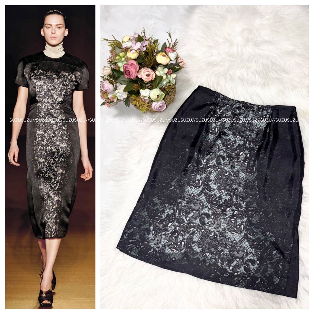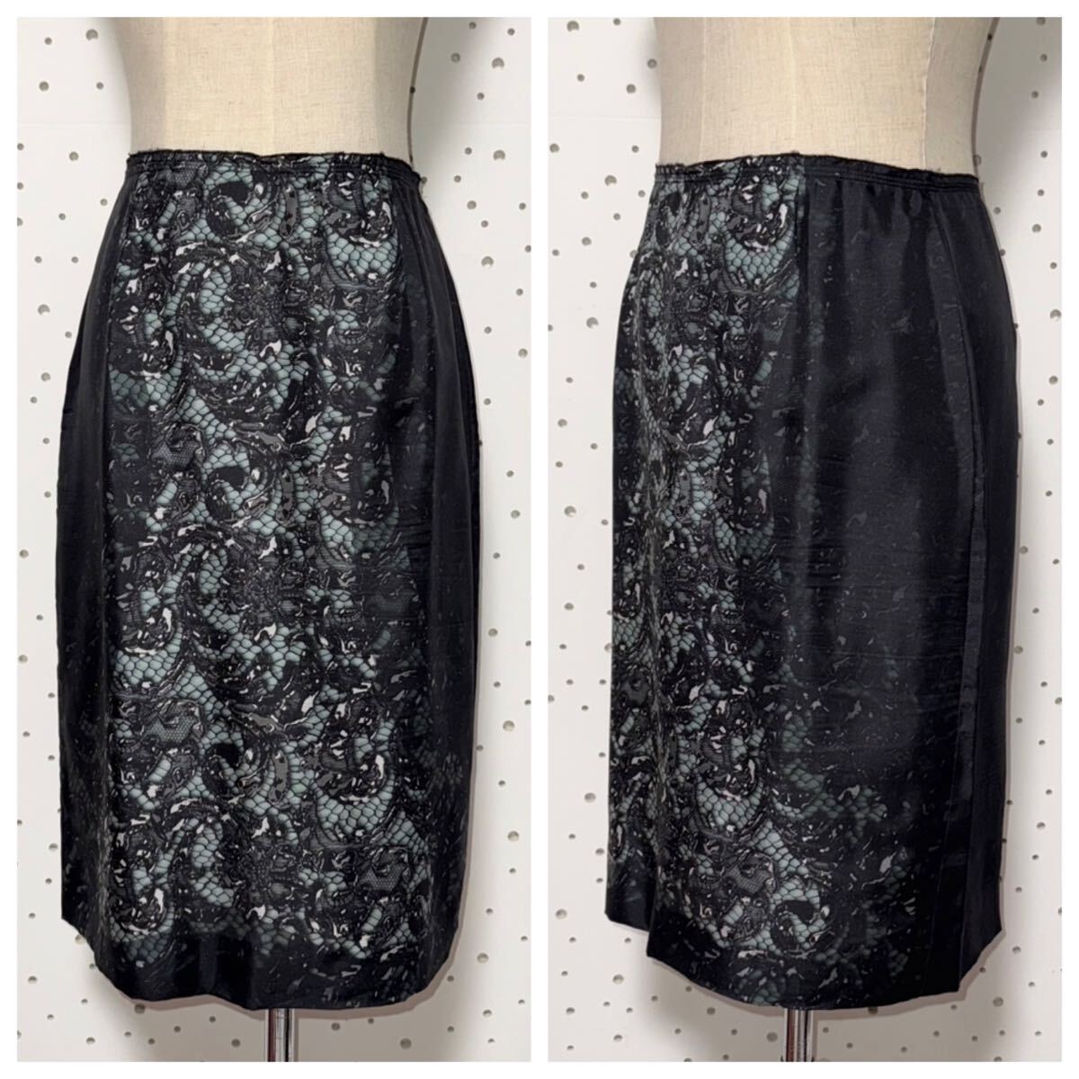 | 本物 プラダ フラワー レース風プリント 切替 シルク100% タイト スカート 36 PRADA レターパック可 | |||
