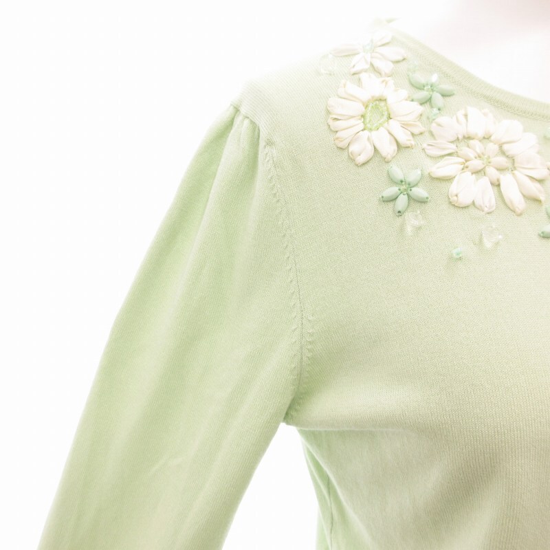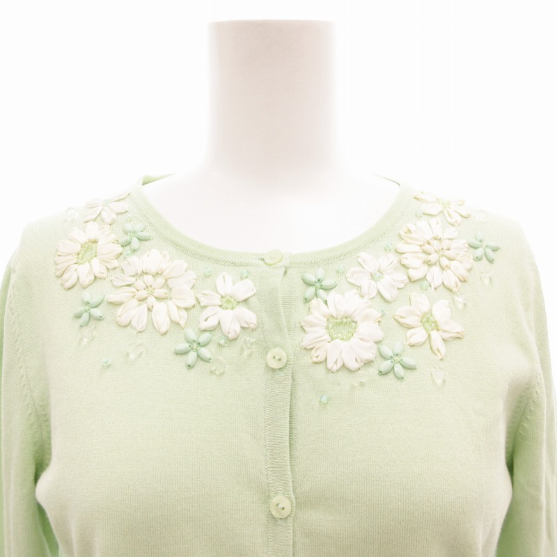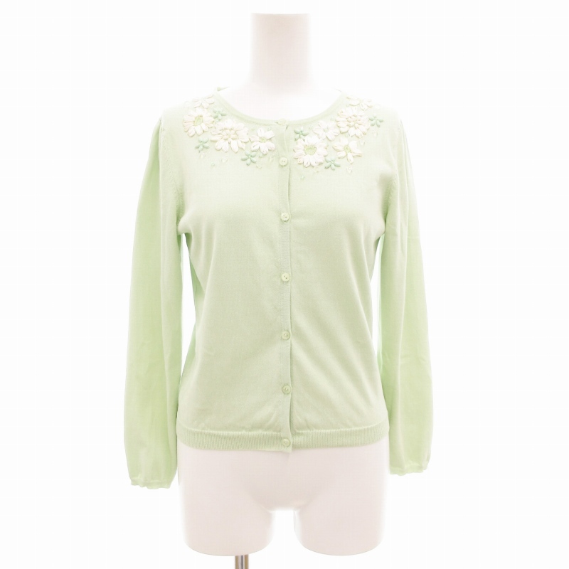 トッカ TOCCA カーディガン ニット 長袖 薄手 花装飾 ビーズ M 緑 ライトグリーン /GV レディース