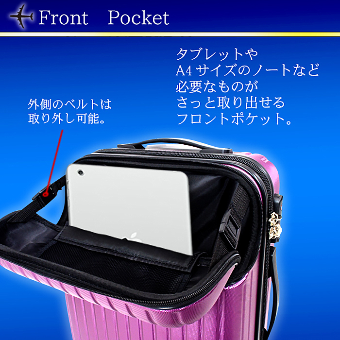 ■利便性に優れたフロントポケットで、機内持込み対応サイズ。