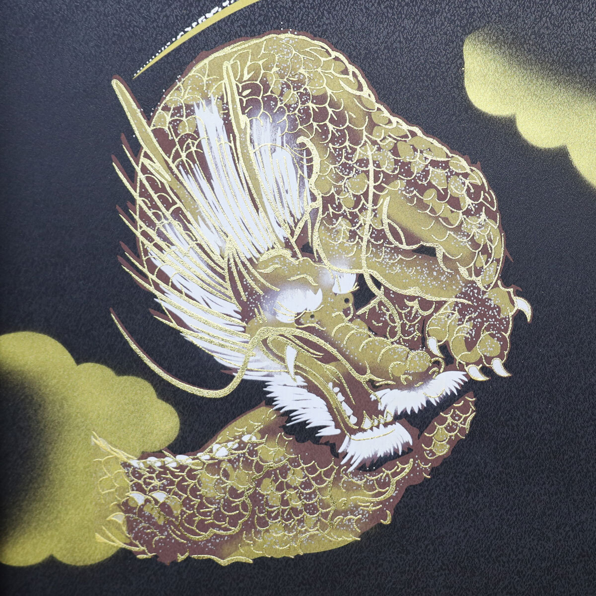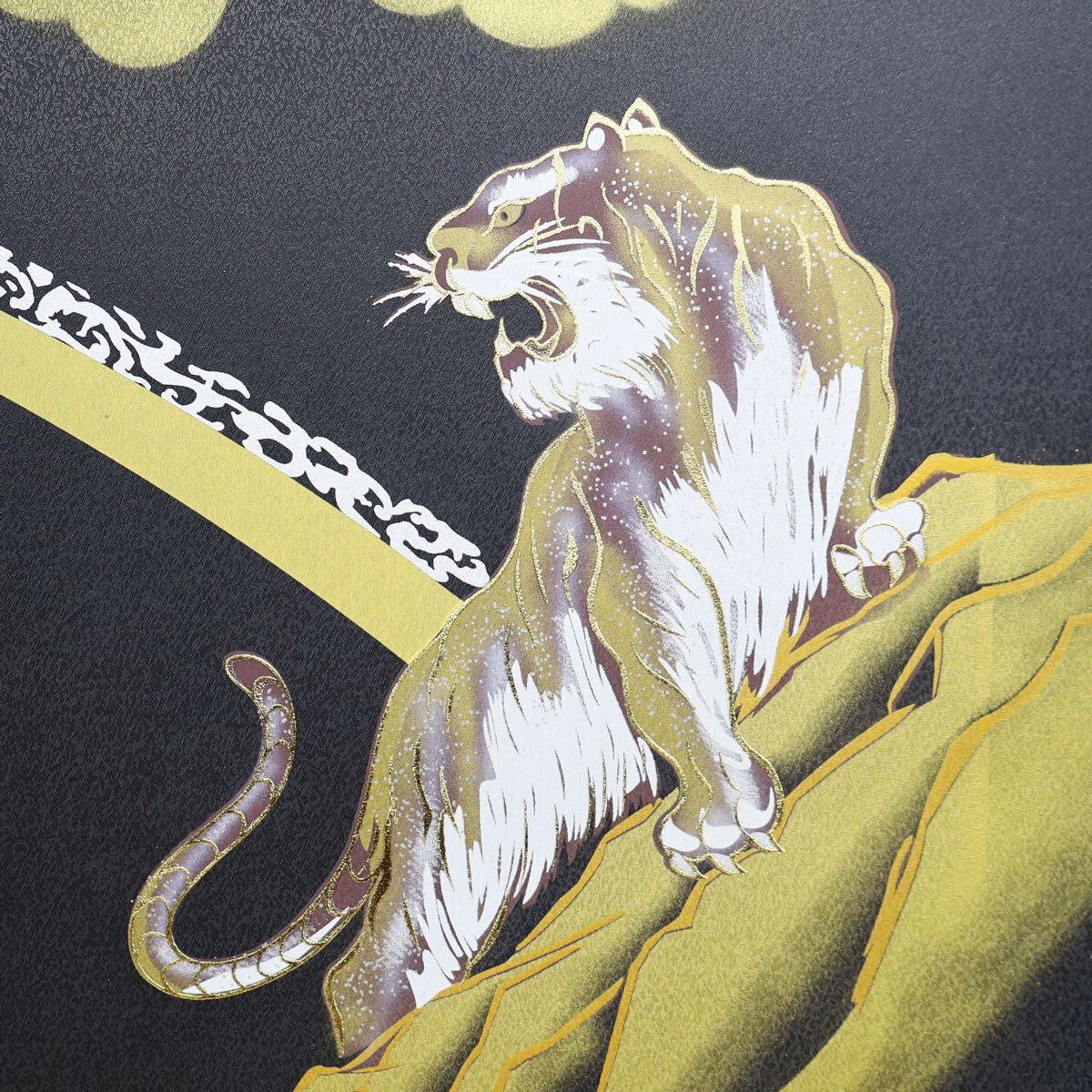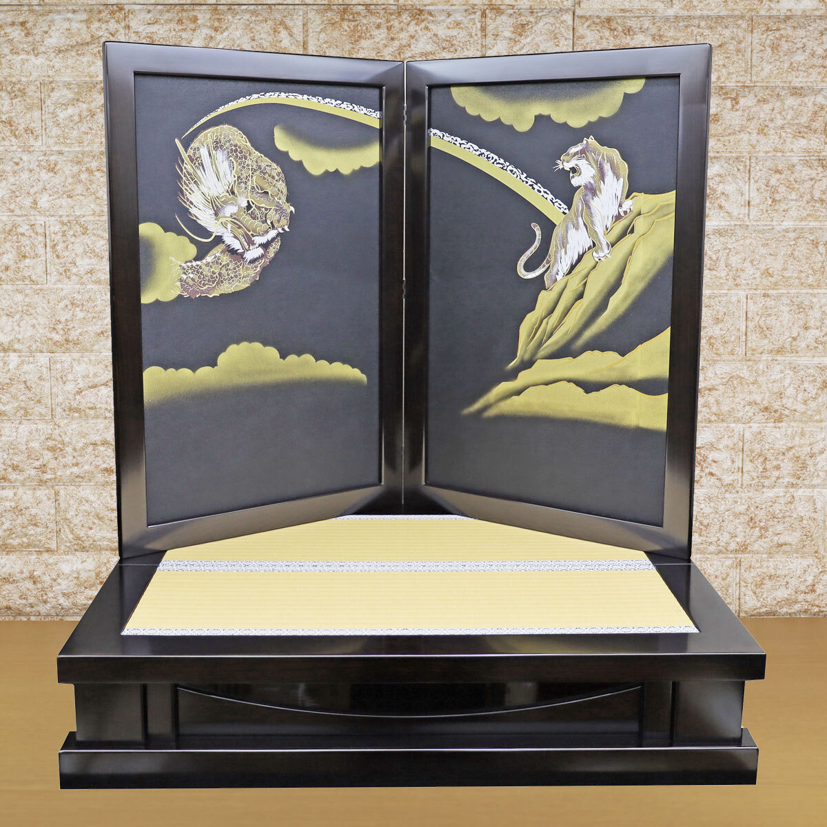 黒檀調の屏風には、勇ましい龍虎の絵柄を