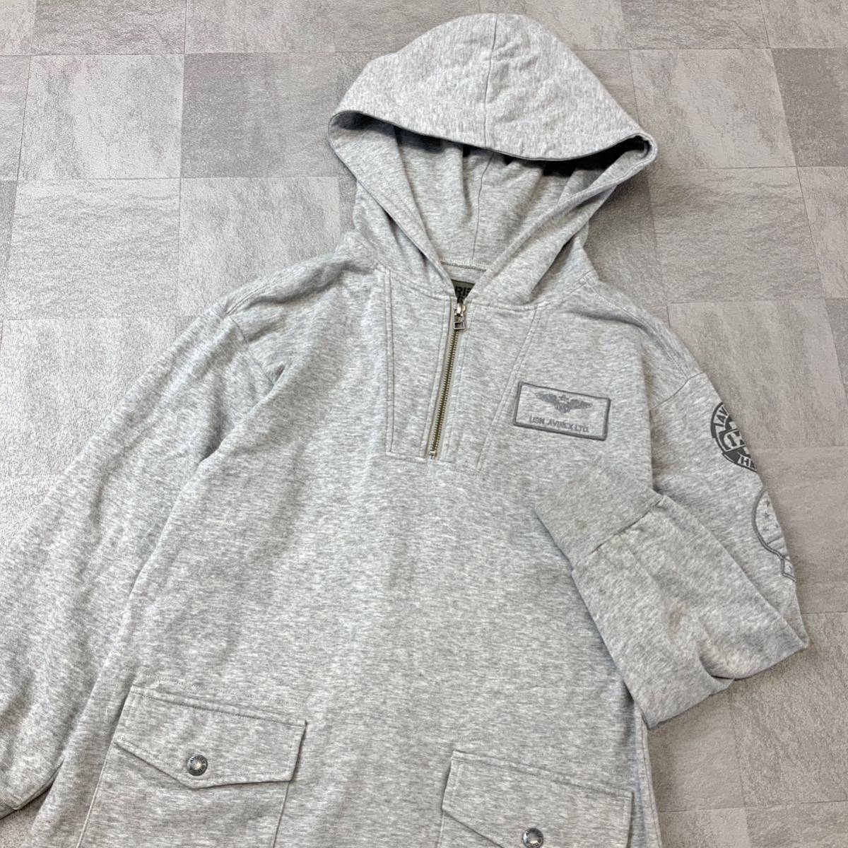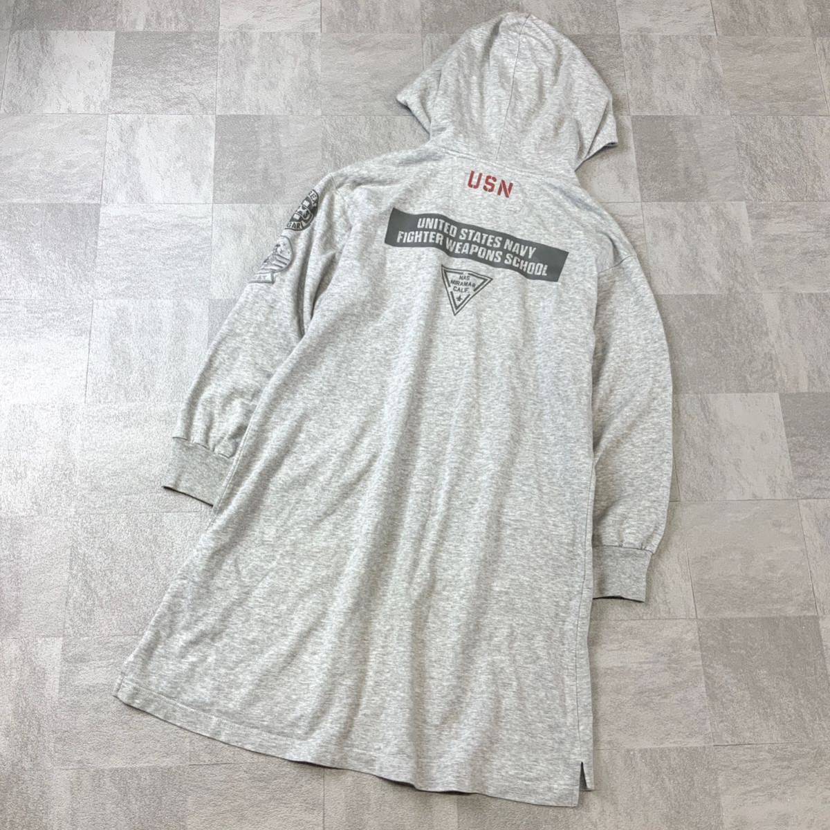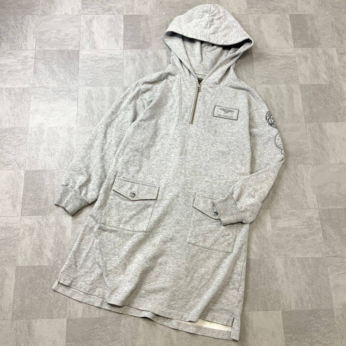 良品 AVIREX HANGAR アヴィレックス ハーフジップ スウェット ワンピースパーカー レディース Sサイズ 霜降りグレー ロングパーカー