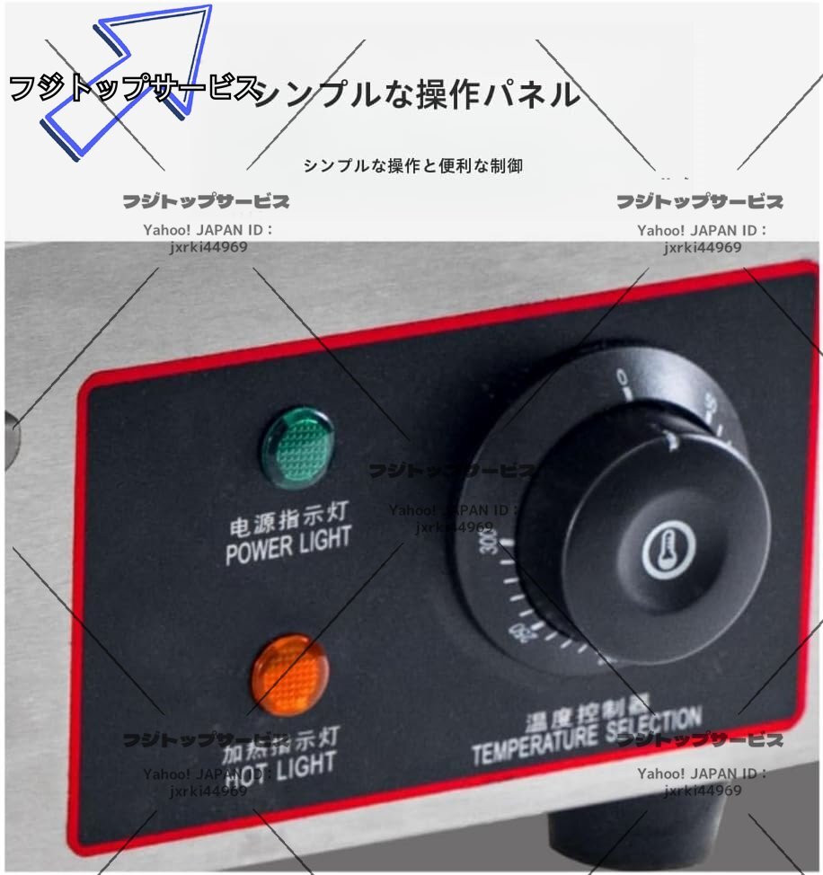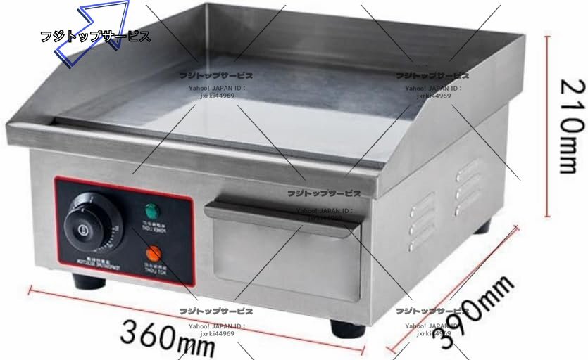 「製品仕様」サイズ:36*39*21cm 焼き面サイズ:36*30cm パワー:1.5Kw 鉄板厚さ:10mm 電圧:110V