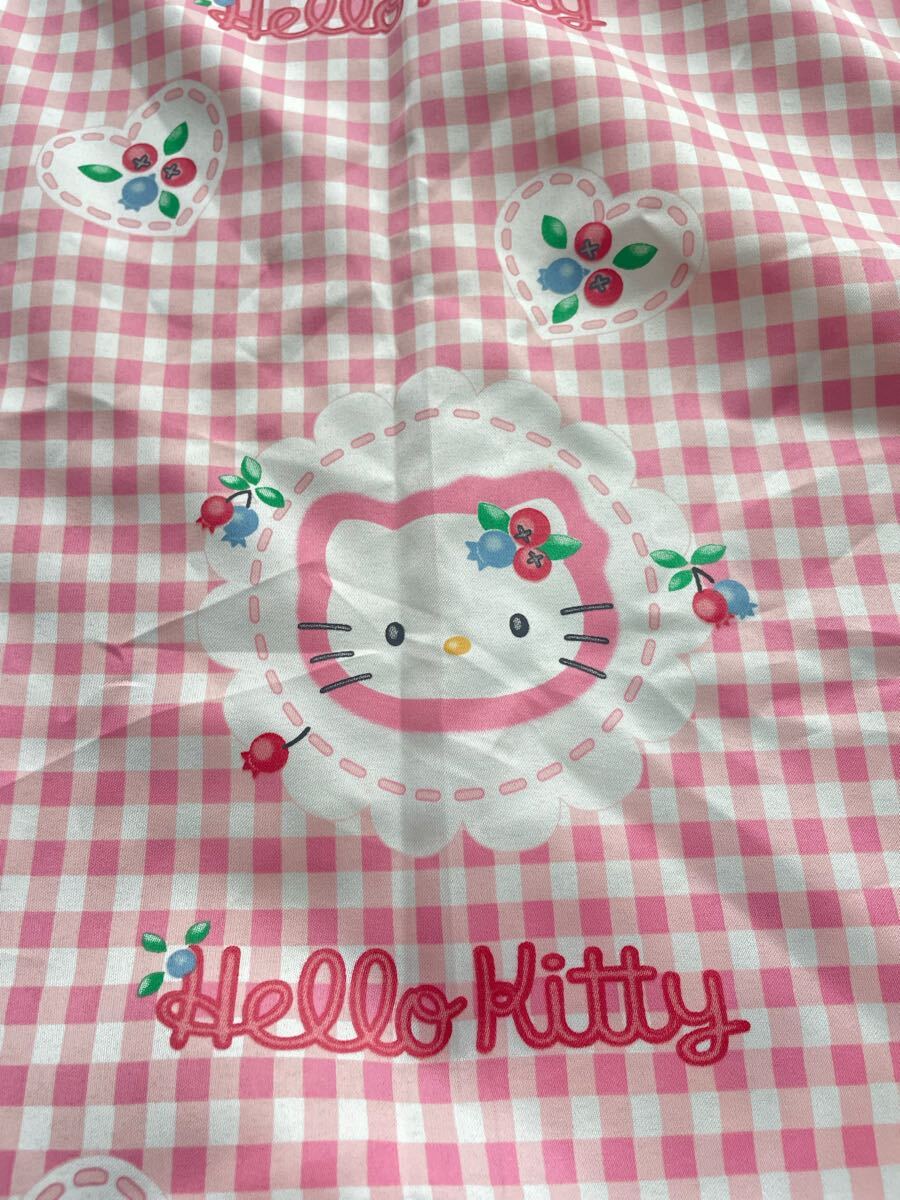 Hello Kitty ハローキティ カフェカーテンベリーシリーズ ハンドメイド 縦 56cm × 横 147cm ポリエステル ピンクチェック サンリオ正規品♪