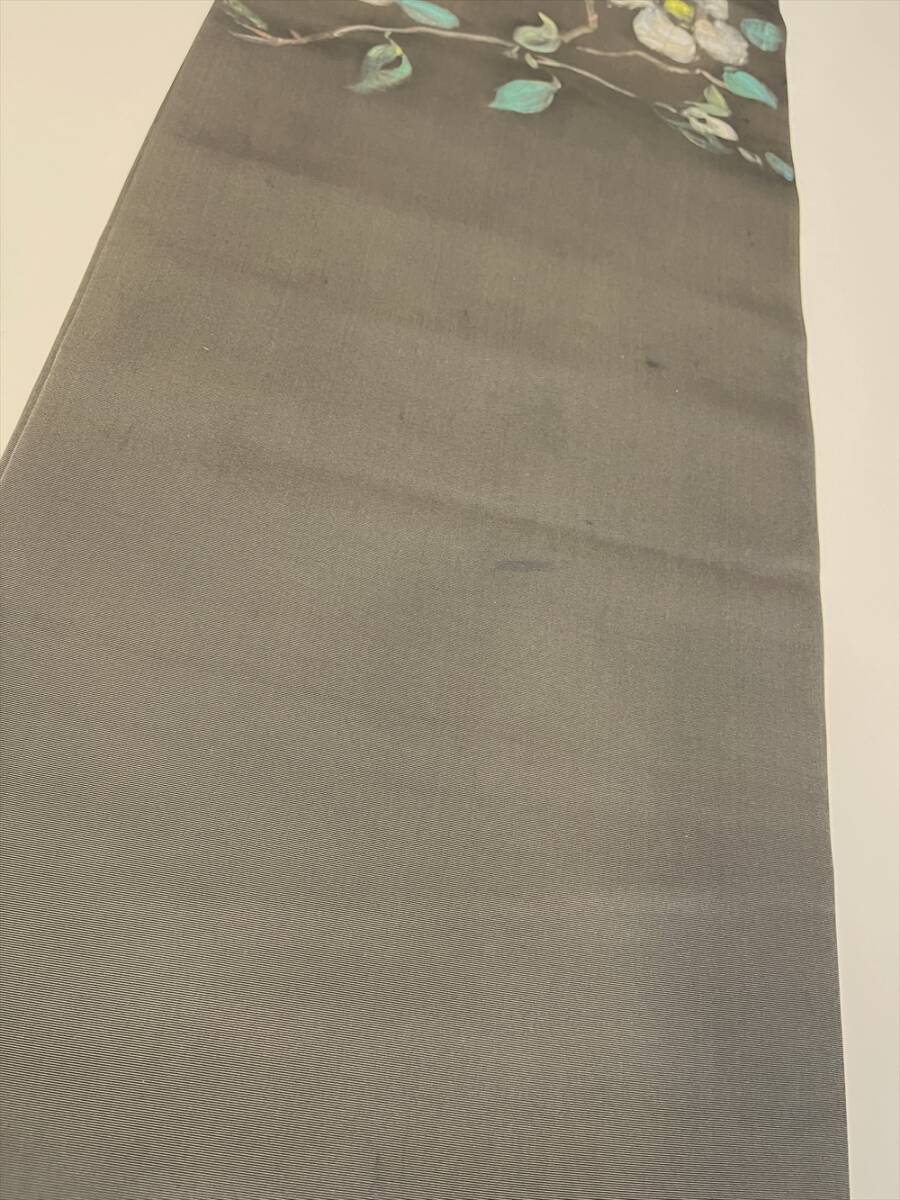 リサイクル帯 袋帯 灰黒 灰茶 地描き 椿