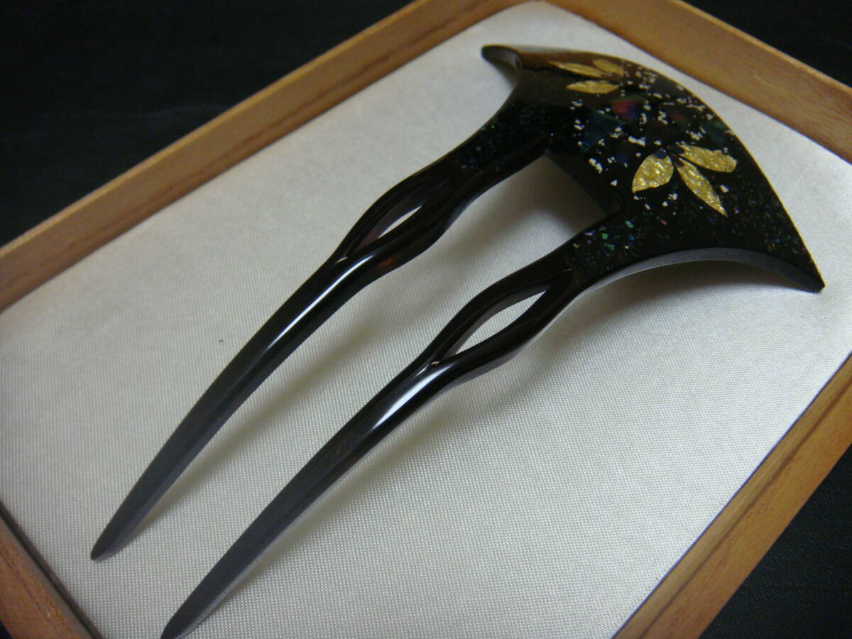 ◆アンティーク 本鼈甲 べっ甲 ベッコウ 螺鈿 簪 かんざし 桐箱入り◆