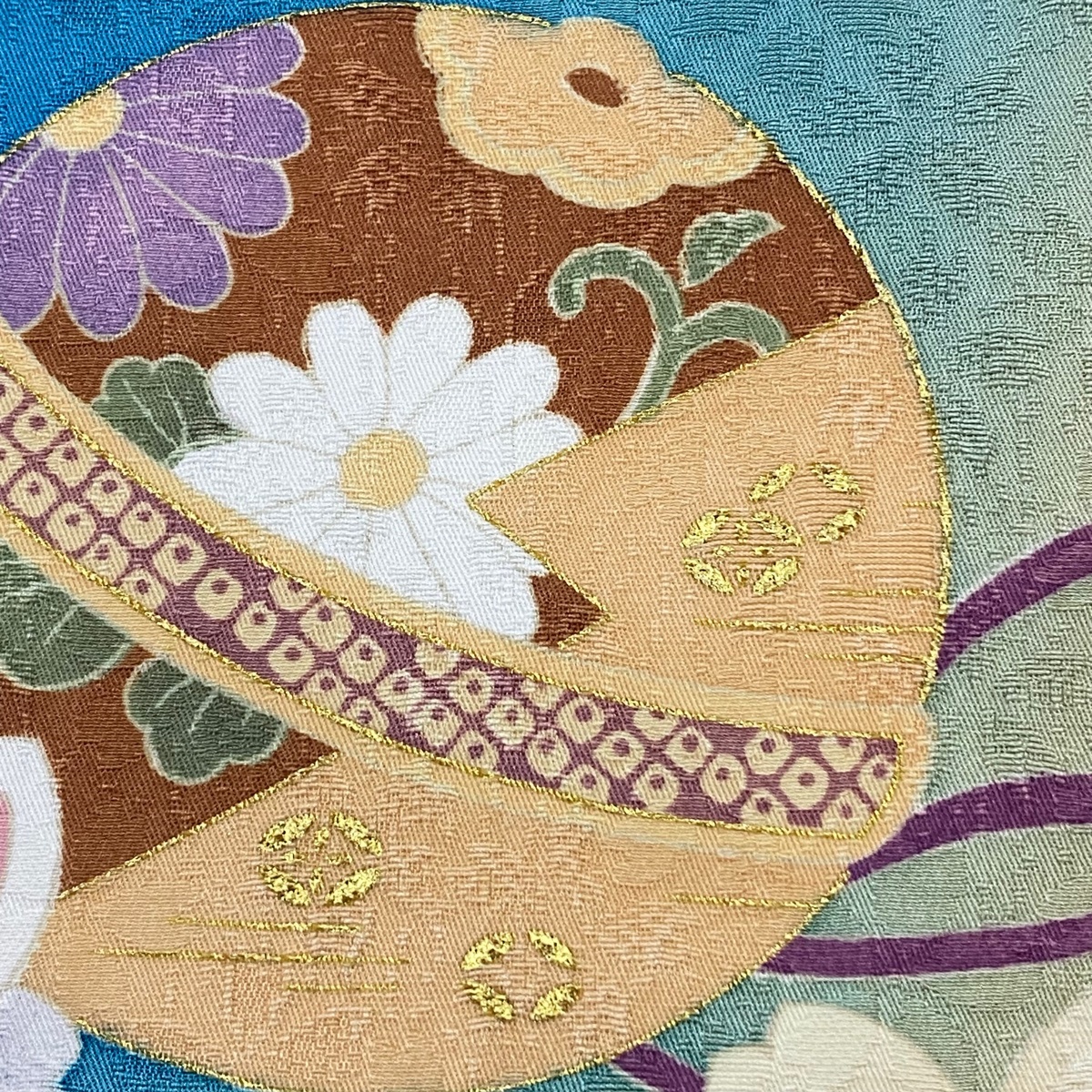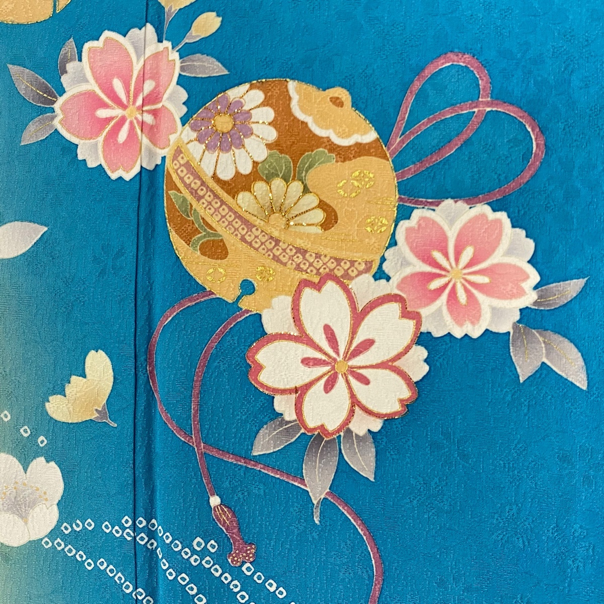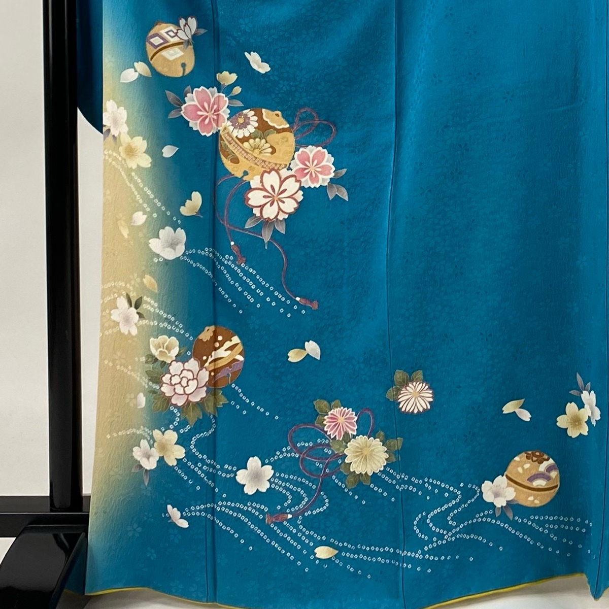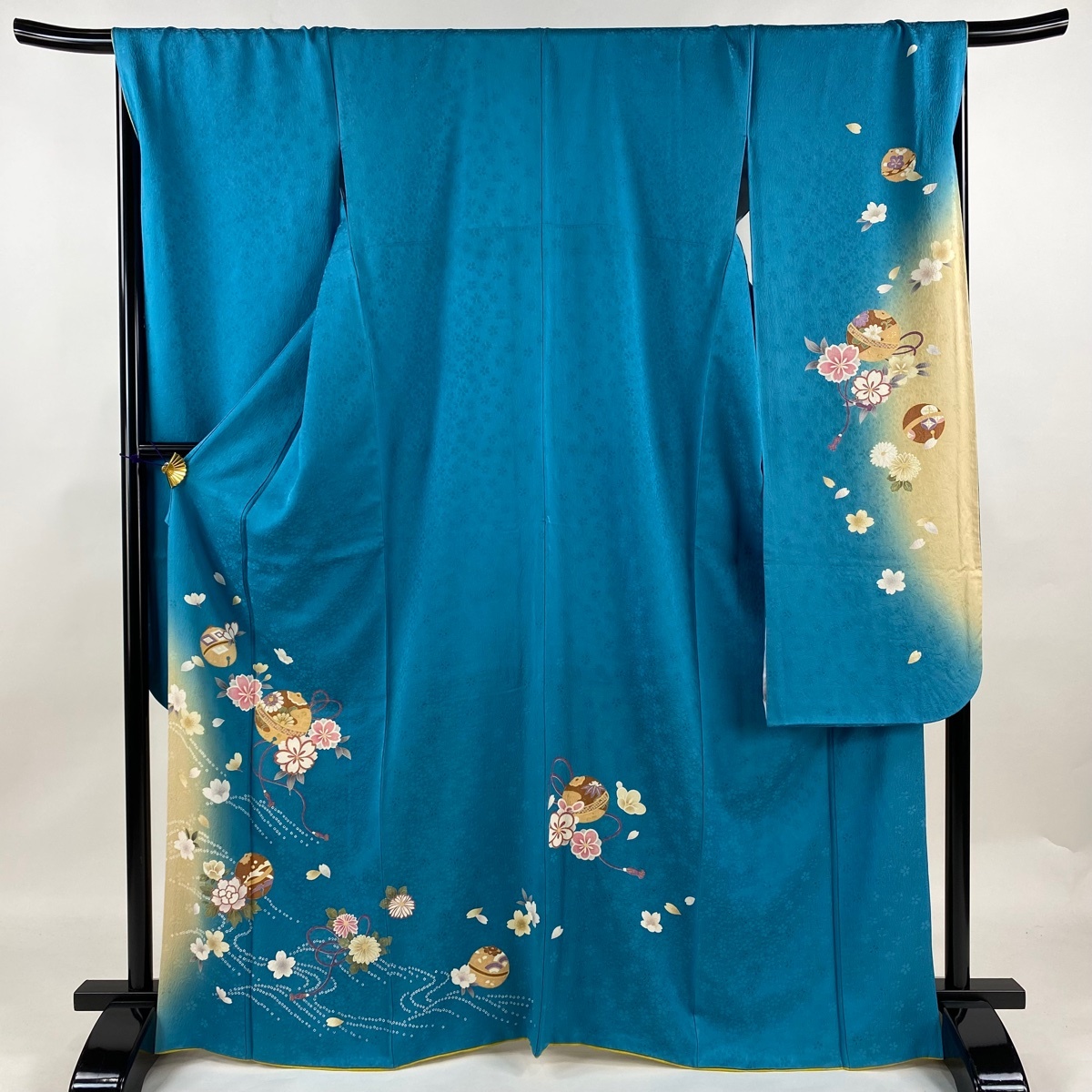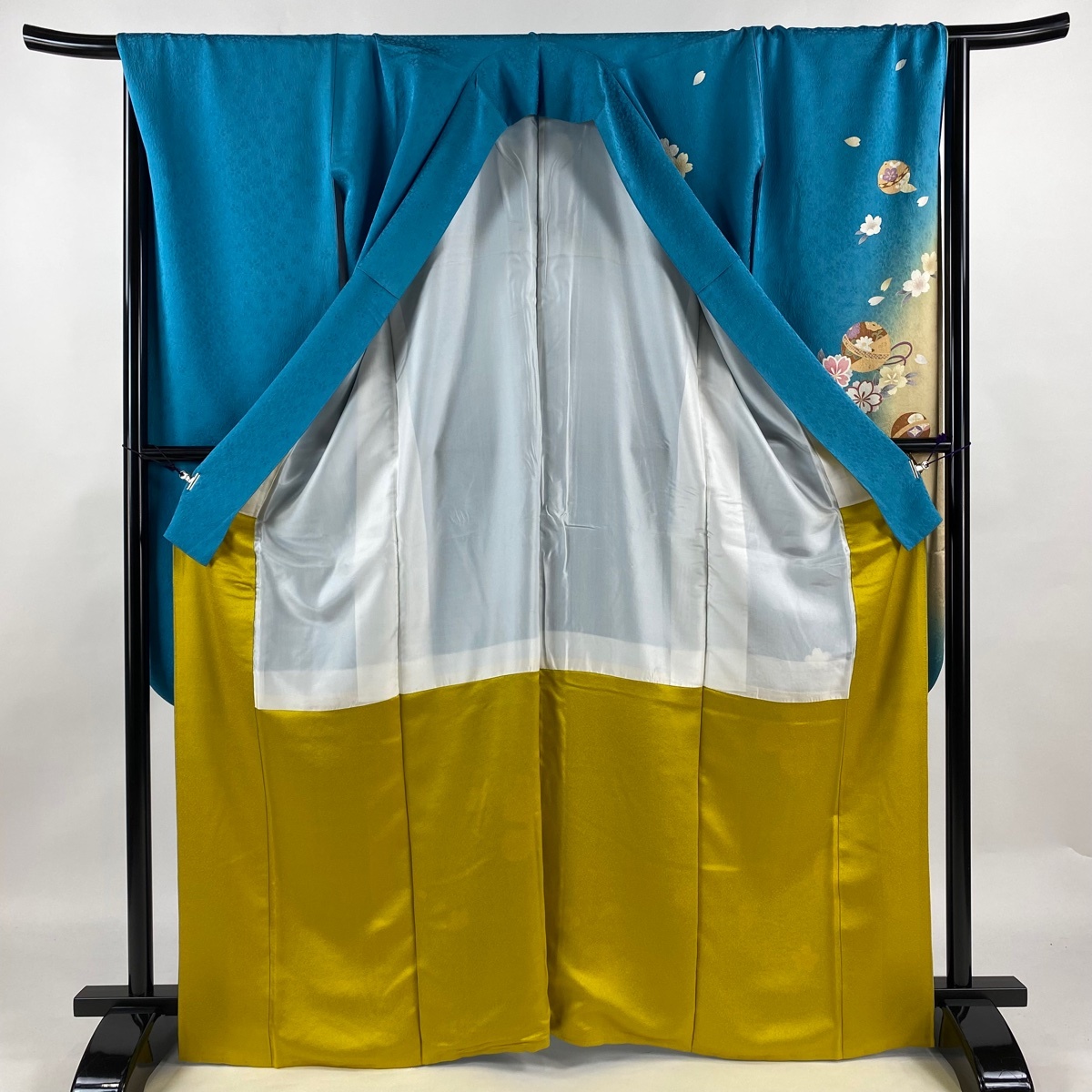 振袖 名品 鈴 桜 箔 金彩 水色 袷 身丈168 裄丈68 L 正絹 【中古】 |