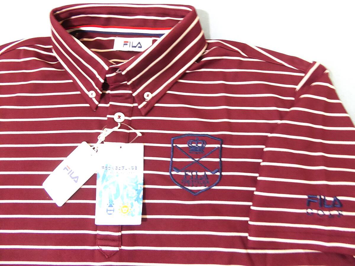FILA GOLF フィラ ゴルフ 保温冷感 UVカット ストレッチ ボーダー柄 ボタンダウン半袖ポロシャツ LL ボルドー