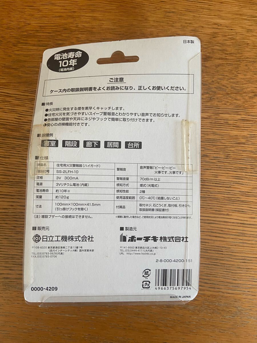 ホーチキ 住宅用火災警報器 ハイガード 煙式 光電式 | |||