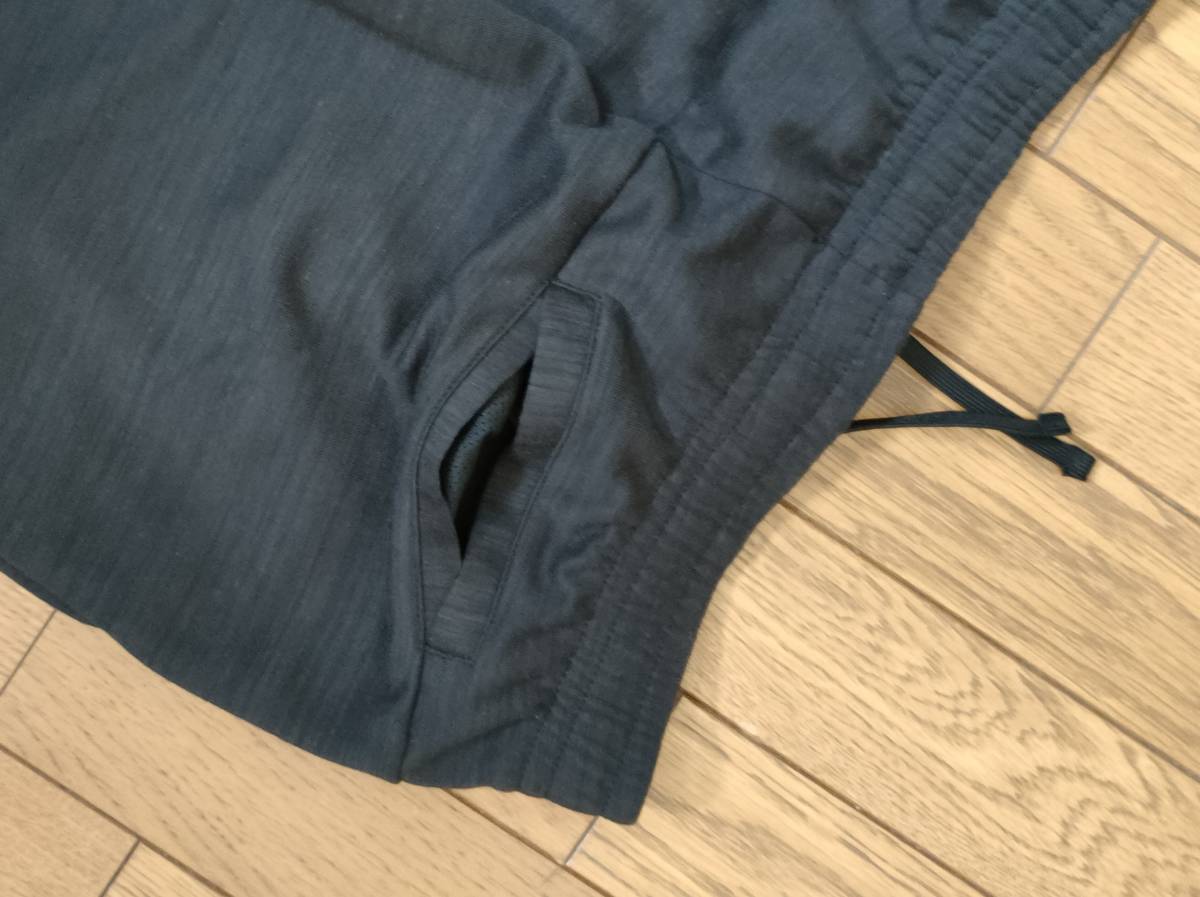腰ひもあり、ポケットは両サイド+背面に1個いています。