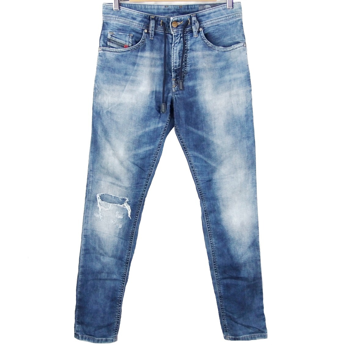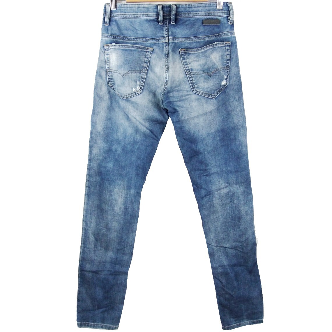 商品説明 | ■商品について ブランド名:DIESEL 販売元:ディーゼルジャパン(株) 生産国:MADE IN ITALY イタリア製 サイズ:28 カラー:インディゴ 素材:コットン 90% ポリエステル 8% ポリウレタン 2% モデル名:THOMMER CB-NE / 069AA ・ストレッチ生地 ・USED色落加工 ・ダメージリペア加工 ・ウエスト ヒモ付き ・フロント ジッパーフライ ・裾上げ なし DIESLE の THOMMER CB-NE ストレッチ ジョグジーンズ、 ジーンズとスウェットパンツの両スタイル&風合いを 大胆に融合させたボトムシリーズ「ジョグジーンズ」。 見た目はジーンズのそれでいながら、実際の素材感は スウェットの質感を再現した秀逸さが特徴、 タウンユースでもルームウェアでも着用頂ける1本です。 着こなしの幅が広いアイテムなのでお勧めですよ。 是非この機会にご購入を検討頂けますと幸いです。 表記サイズ:28 ウエスト幅:約38.5cm 股上:約25.5cm 股下:約80cm 裾幅:約15cm 腿幅:約29cm (股下付根部分) ※平置にて計測 ※素人採寸のため多少の誤差はお許し下さい ■状態について 全体的に着用に伴う使用感があるUSED品です。 着用に支障がある程のダメージ汚れはありません。 まだまだ問題なく着用頂ける状態です。 中古品のため少しでも状態を気にされる方、 完璧な商品をお求めの方は入札をお控え下さい。 -------------------------------------------------------------------- 他にも衣料品を中心に出品させて頂いております。 複数落札して下さった場合には、まとめて発送させて頂きますので、 送料がお得になります。⇒【出品リスト】 |