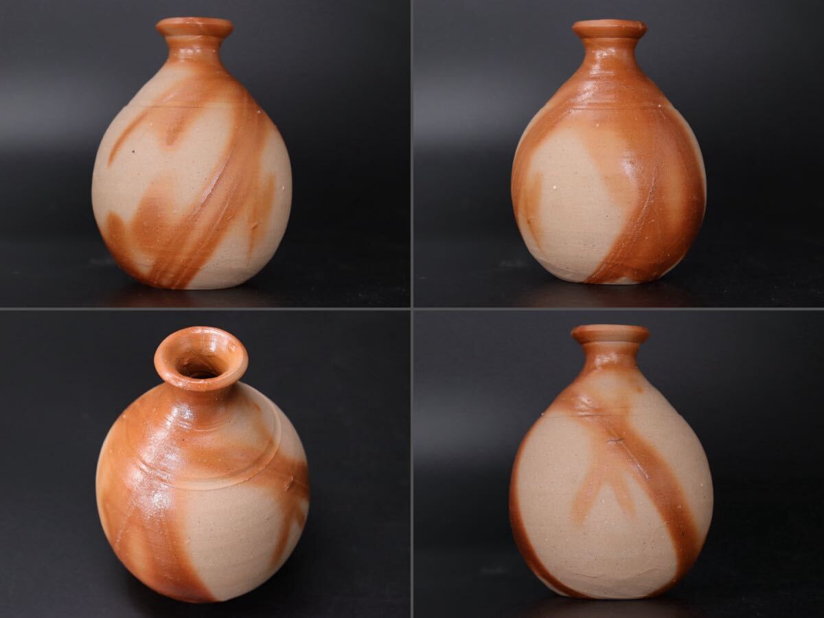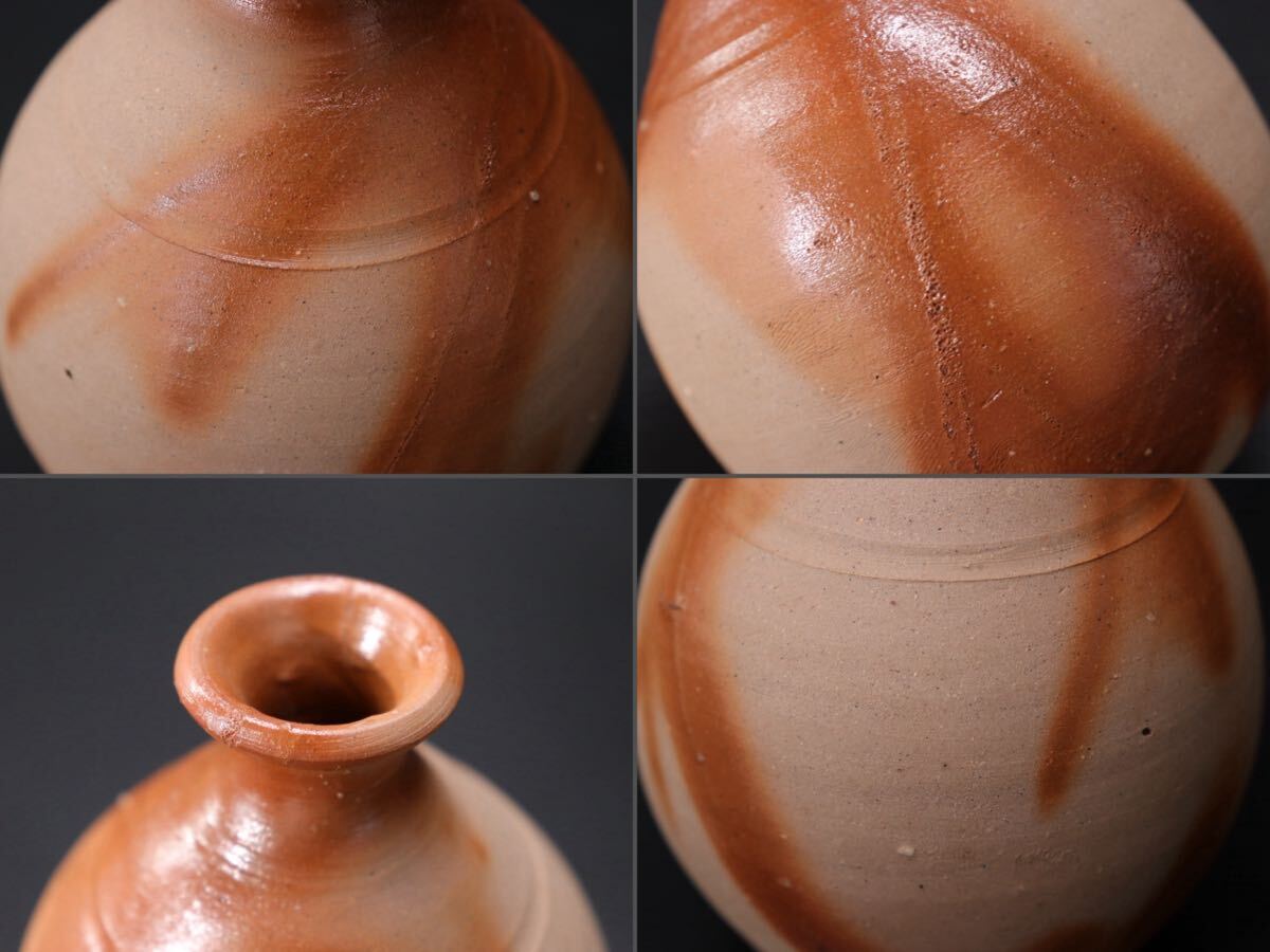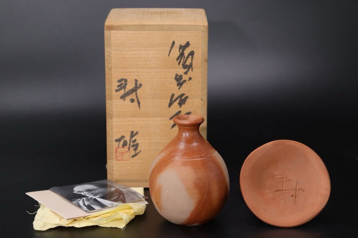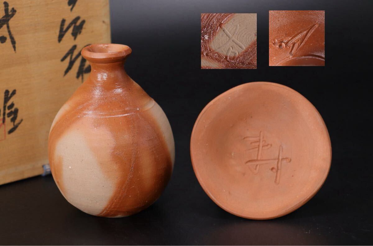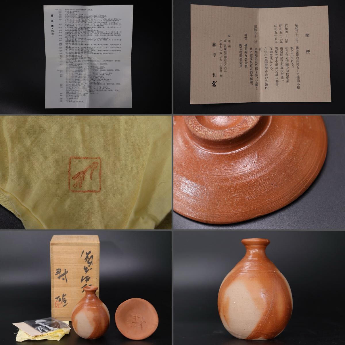 | 藤原雄 ・ 藤原和 合作 備前 徳利 ・ 盃 共箱 栞 付 / 備前焼 人間国宝 酒器 酒盃 手造 手捻り .B184 |