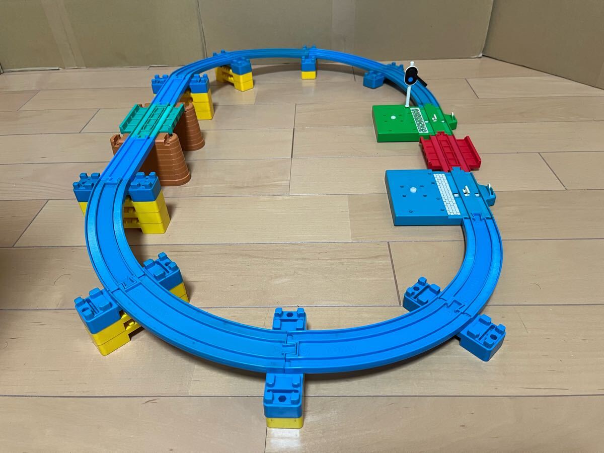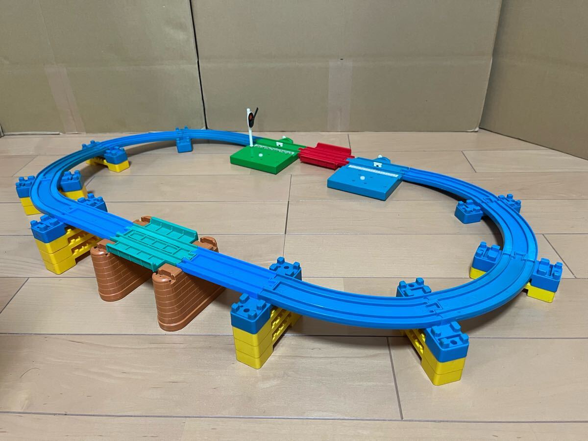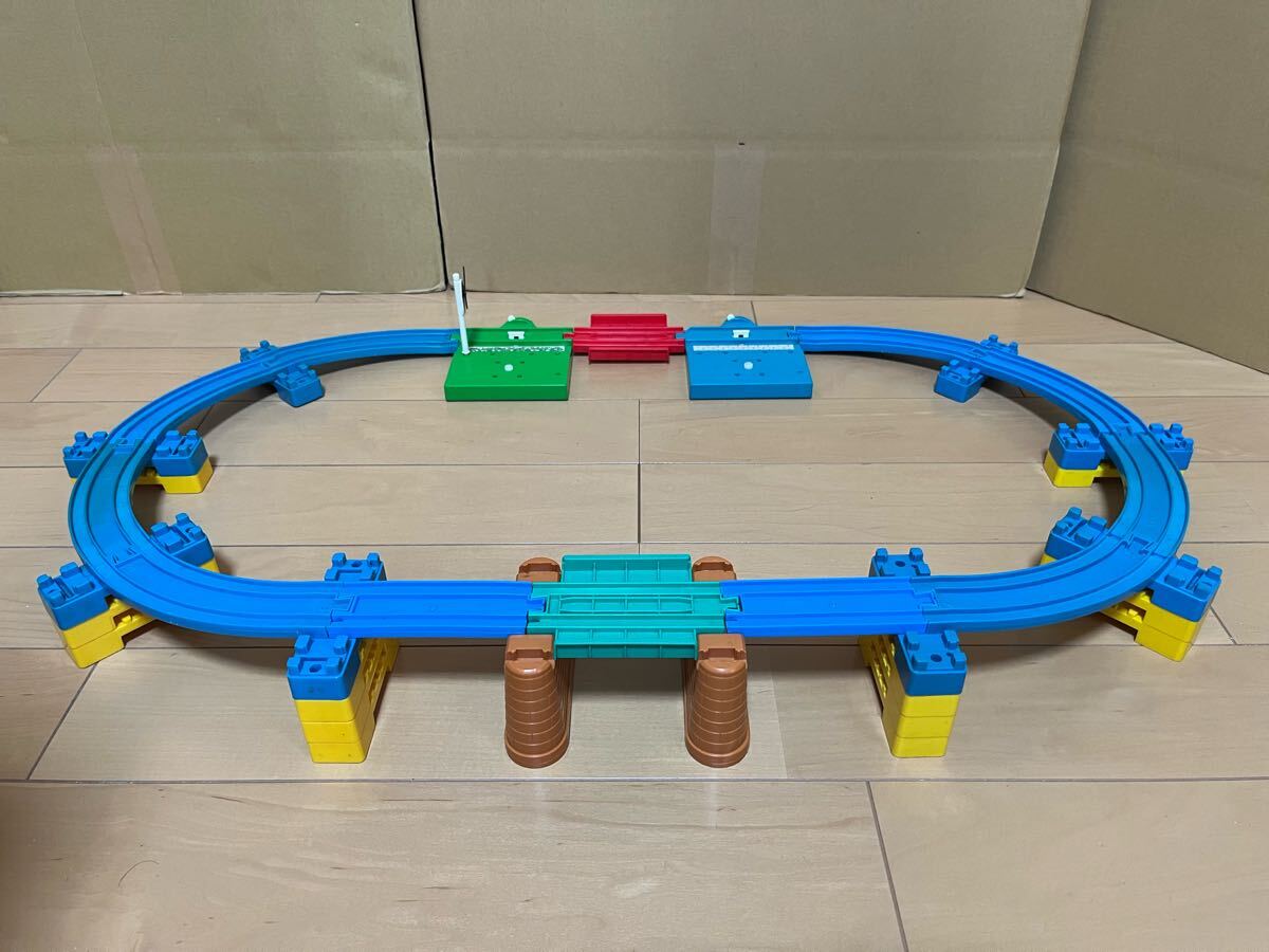 プラレール ガーター橋とA B坂道レールと橋脚を使ったコースレイアウトです。
