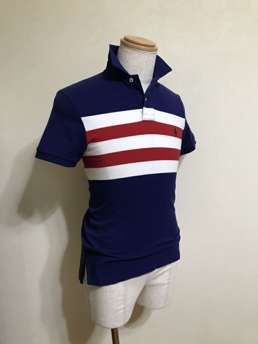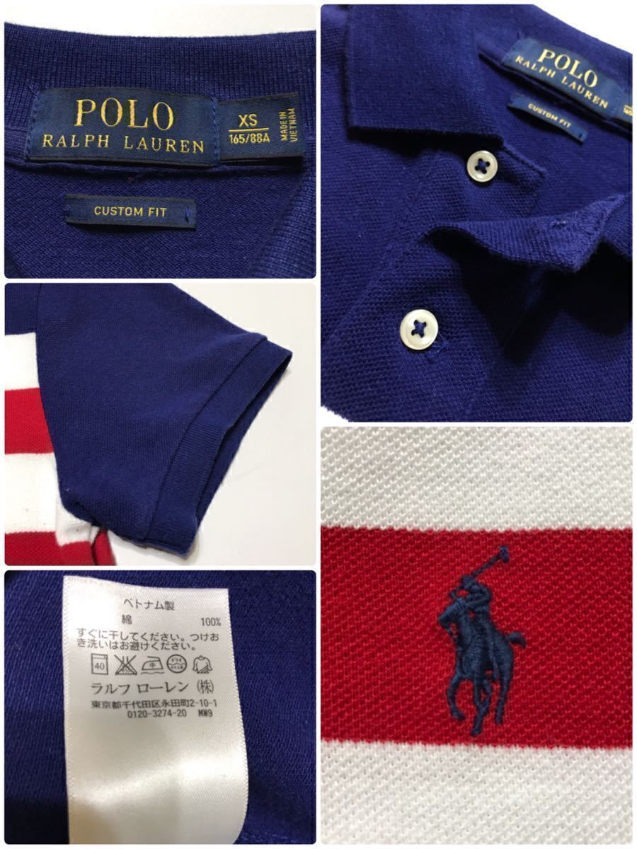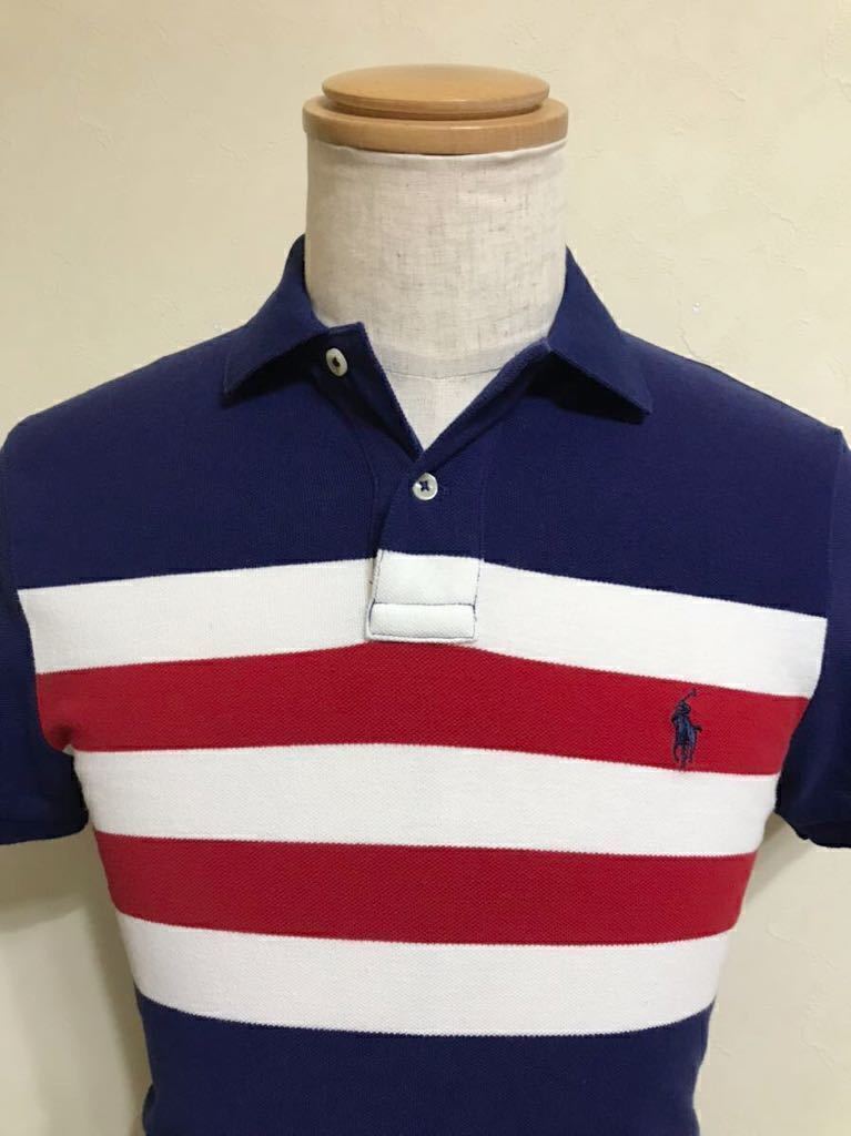 Polo Ralph Lauren ポロ ラルフローレン ボーダー 鹿の子 ポロシャツ トップス サイズXS 165/88A ネイビー 白 赤 カスタムフィット 半袖